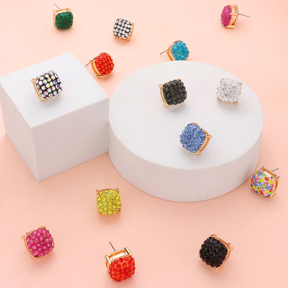 Stone Embellished Square Stud Earrings