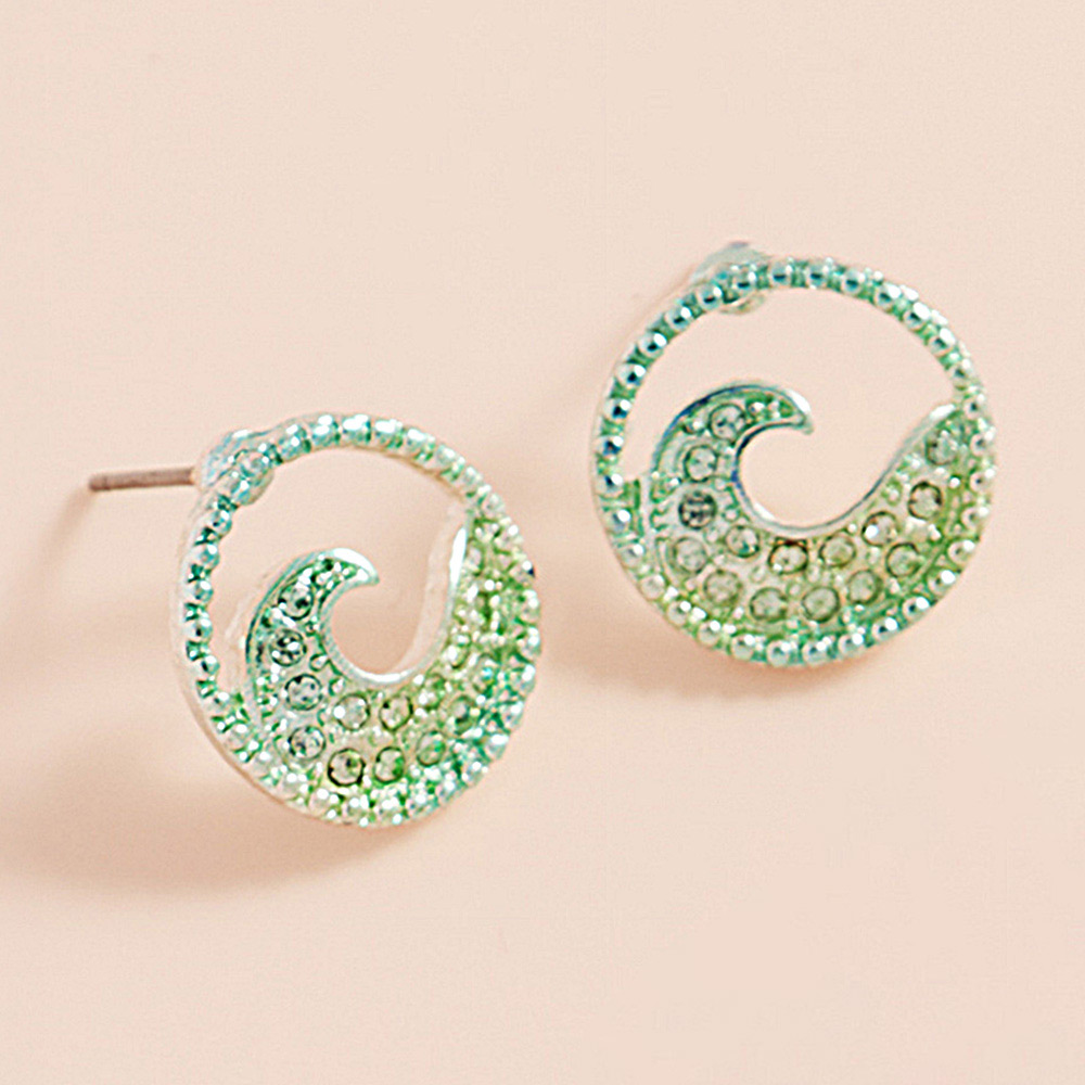 Stone Paved Colored Metal Wave Stud Earrings Stone Paved Colored Metal Wave Stud Earrings Stone Paved Colored Metal Wave Stud Earrings