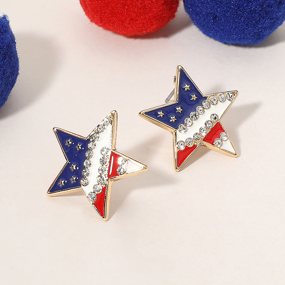 Stone Paved Enamel American USA Flag Star Stud Earrings