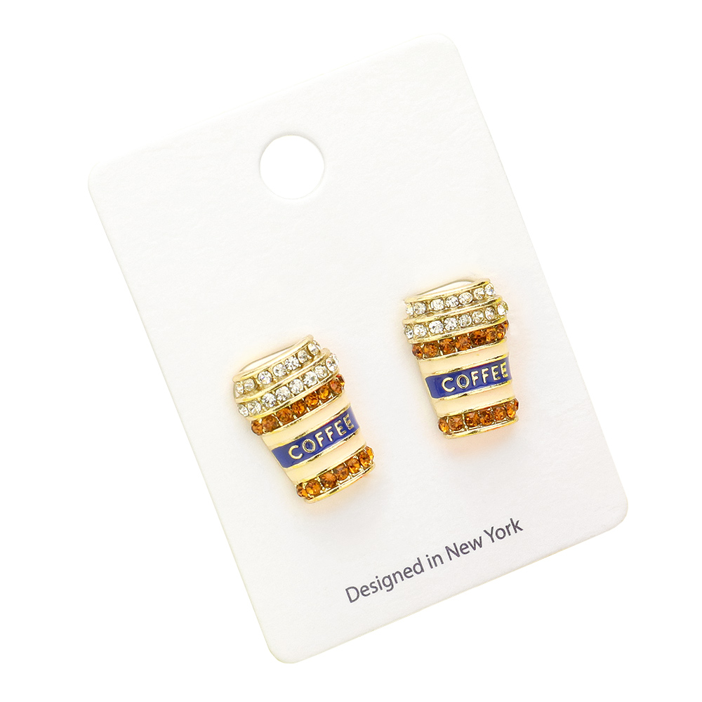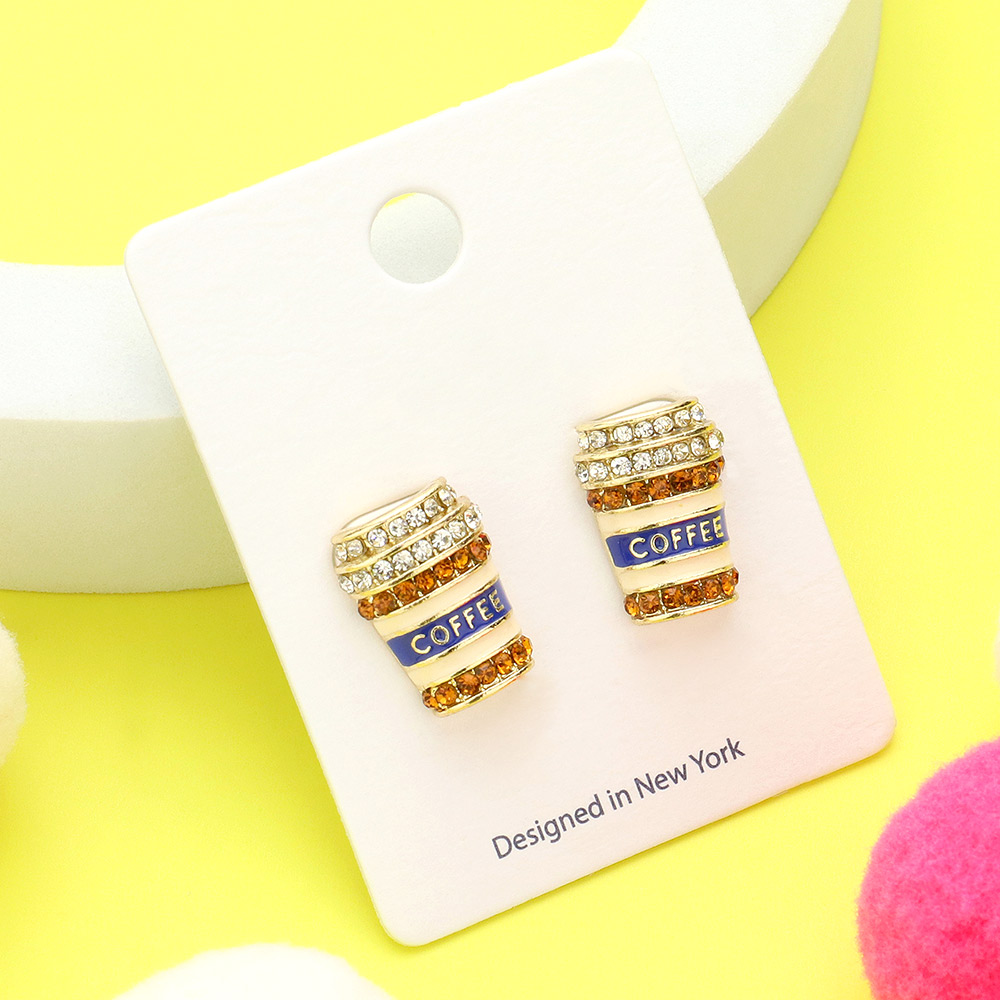Stone Paved Enamel Coffee Tumbler Cup Stud Earrings