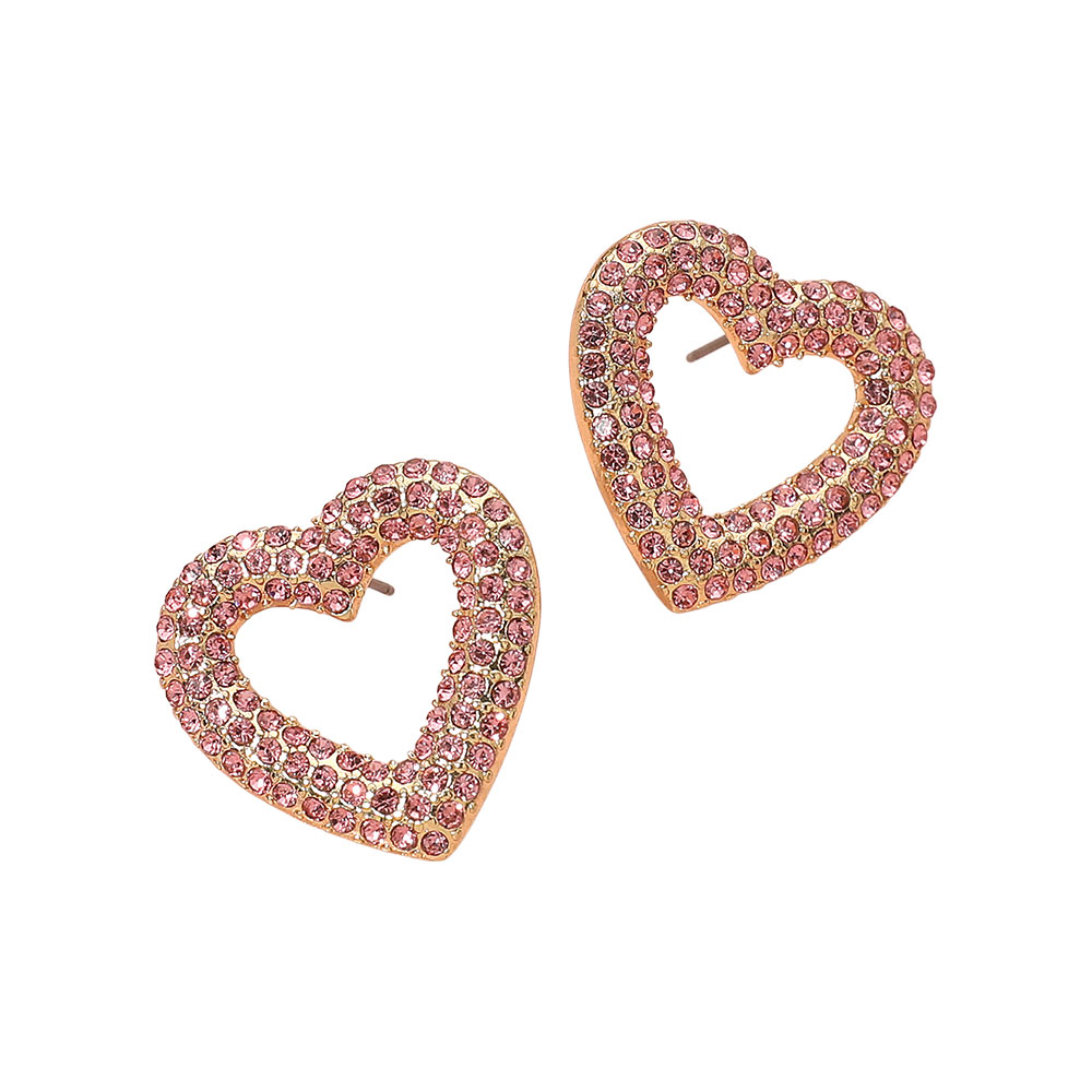 • Make a statement of love and style with these sparkling heart stud earrings. Adorned with shimmering stones in an open-heart design, they catch the light beautifully and add a touch of glamour to any look, from casual chic to special occasion elegance.