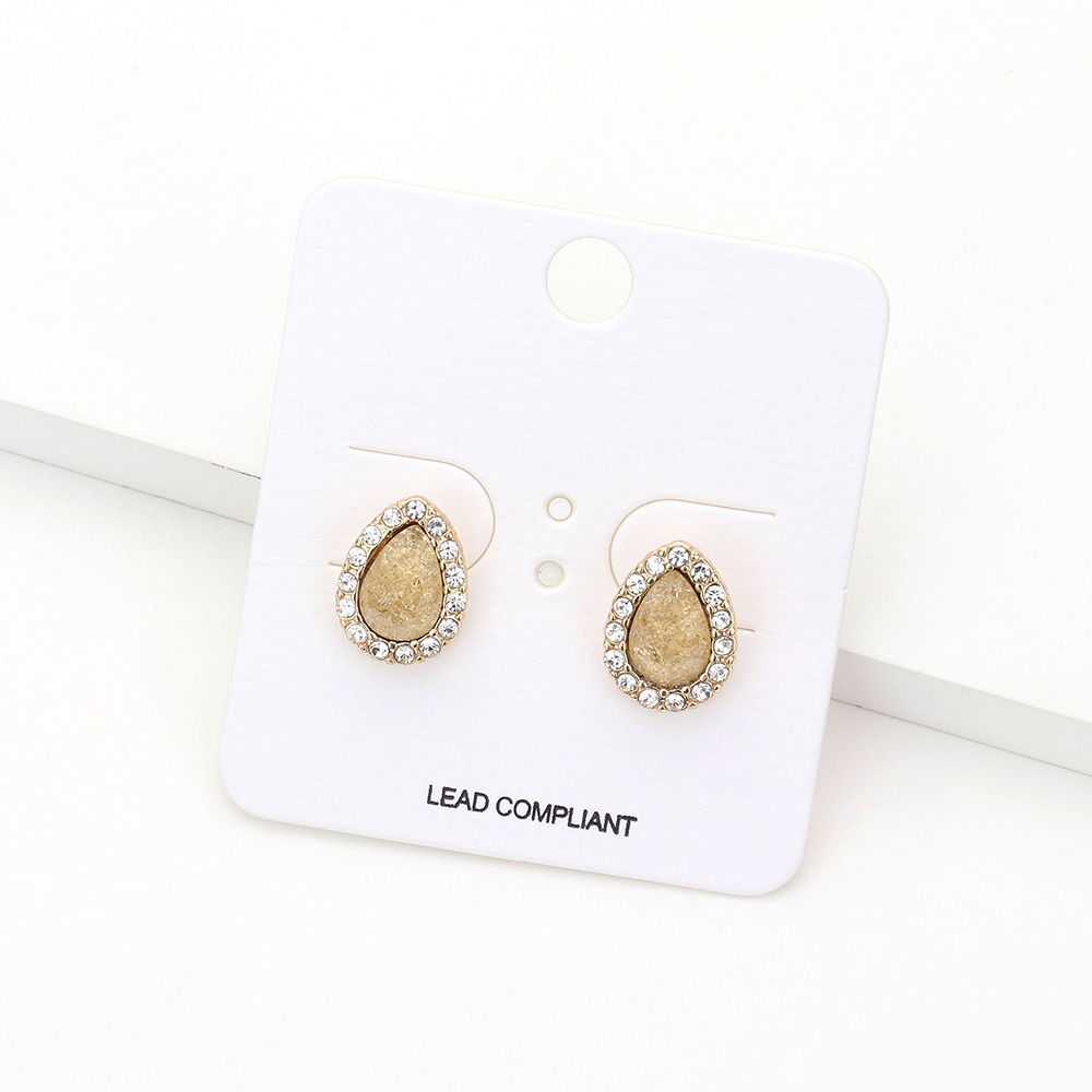 Teardrop Stone Accented Stud Earrings