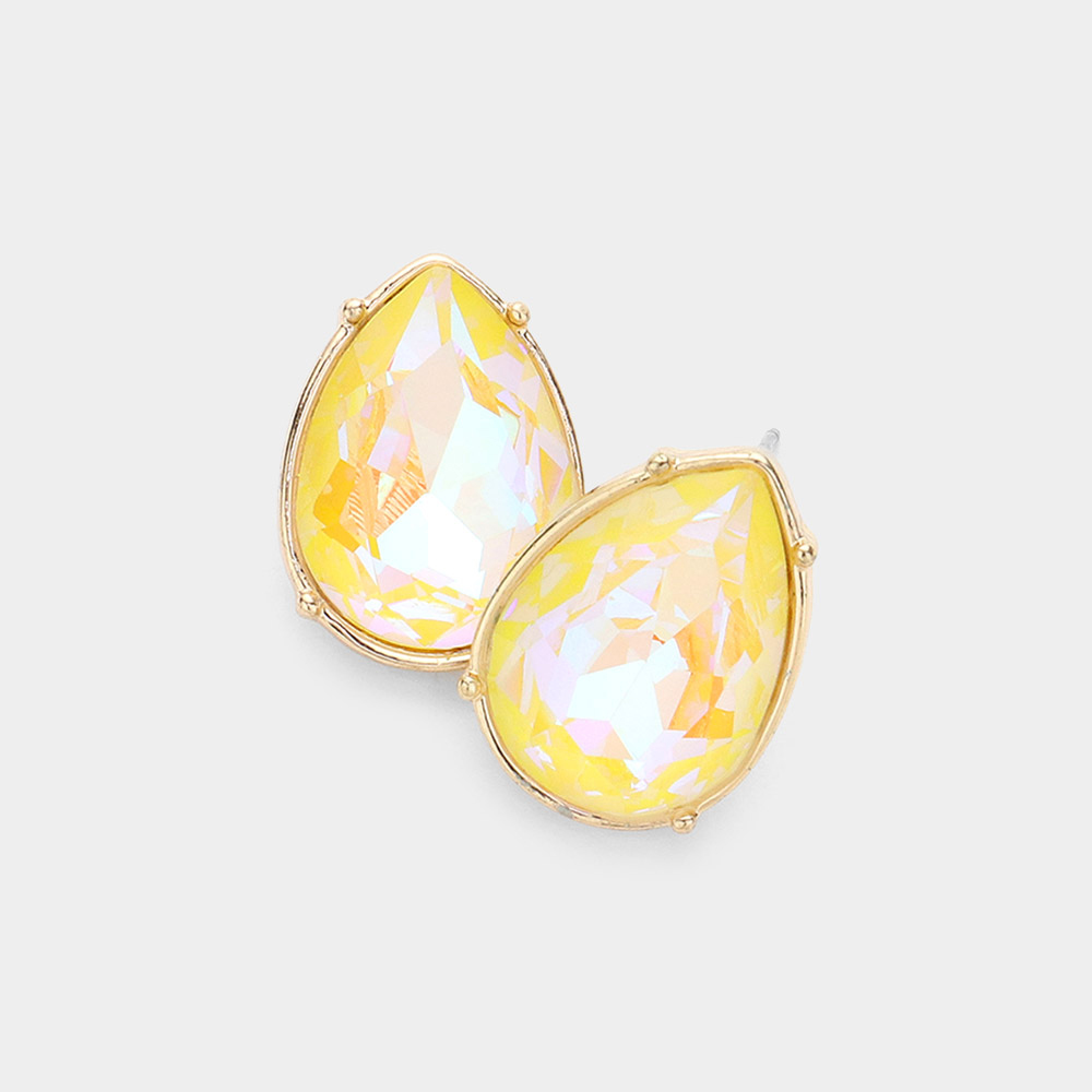 Rhinestone Ring Faceted Beaded Open Teardrop Dangle Earrings
