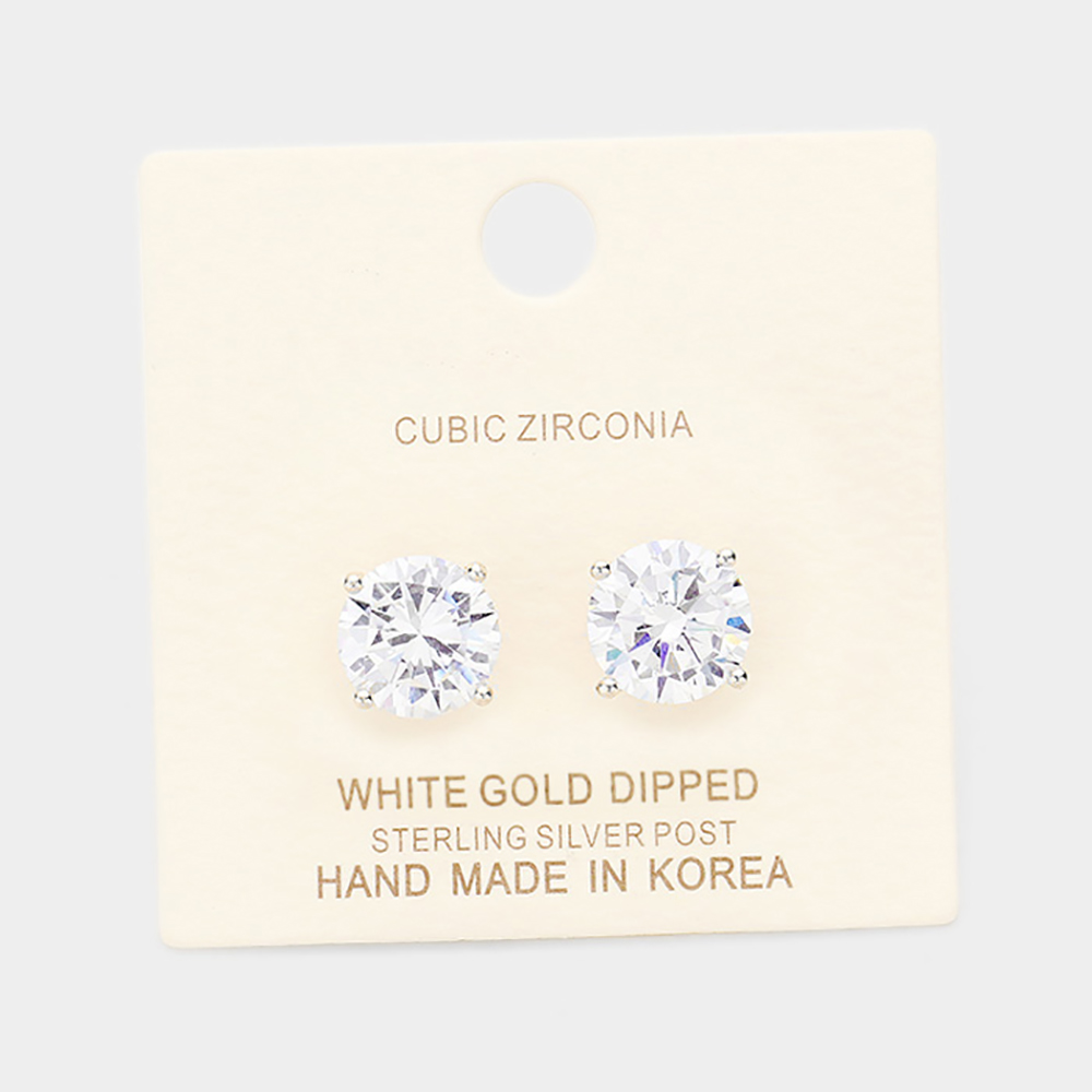 White Gold Dipped 8mm Cubic Zirconia Round Stud Earrings