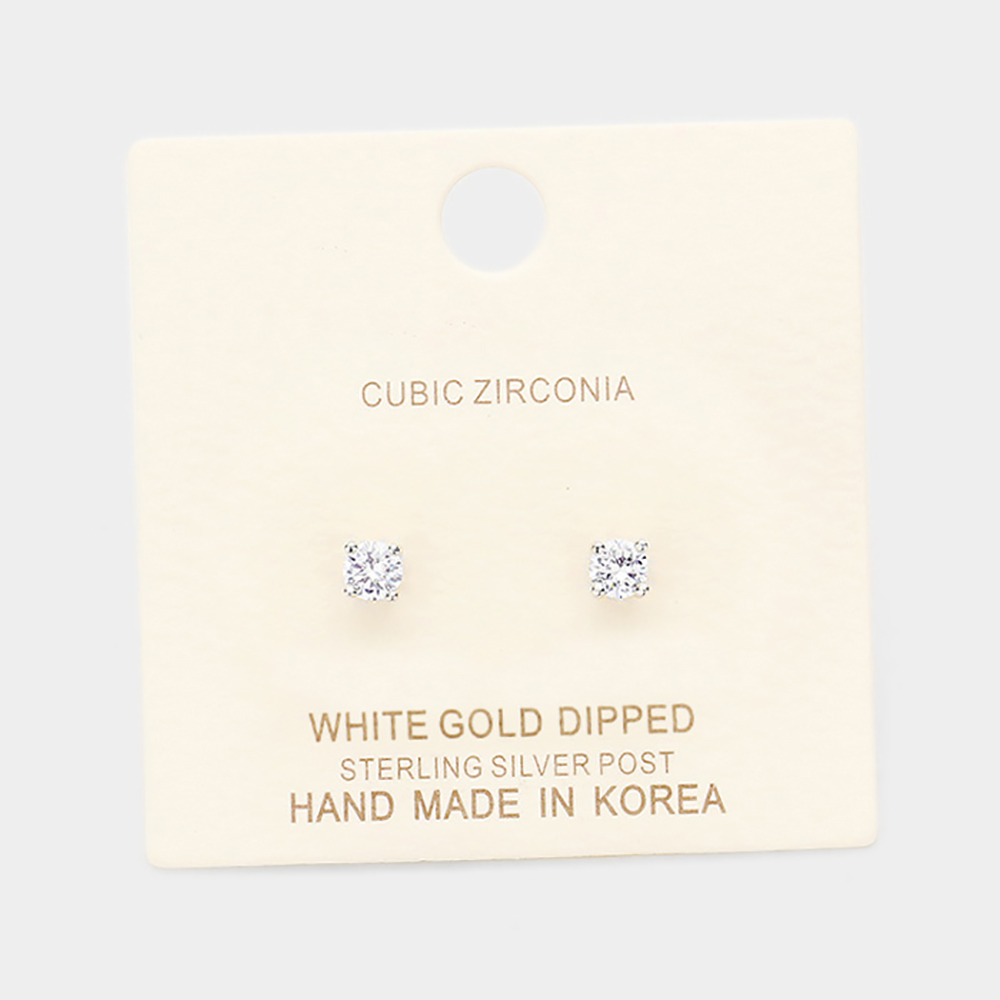 White Gold Dipped 4mm Cubic Zirconia Round Stud Earrings