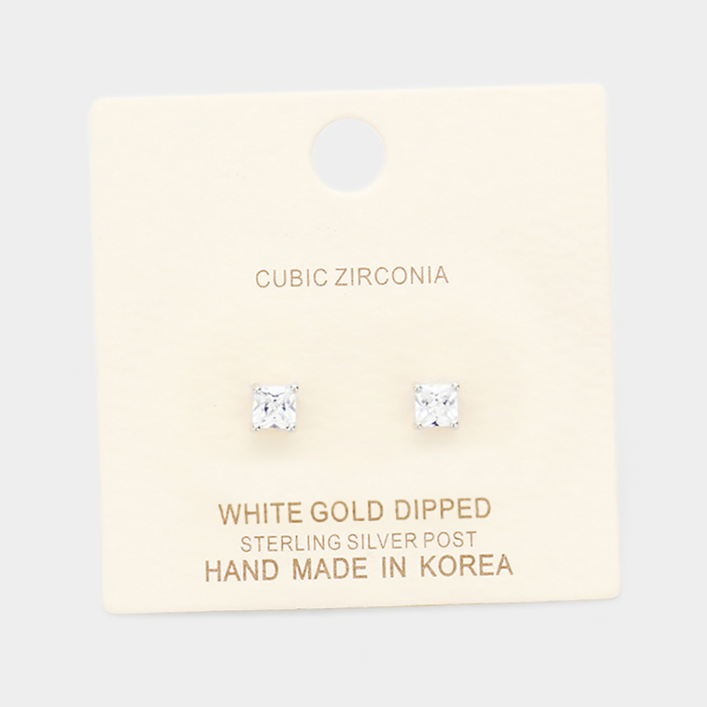 White Gold Dipped 4mm Cubic Zirconia Square Stud Earrings