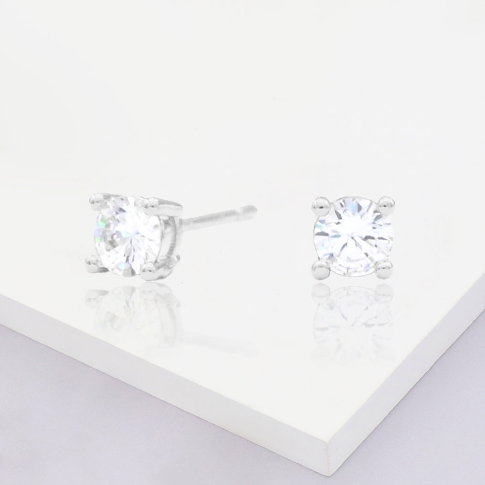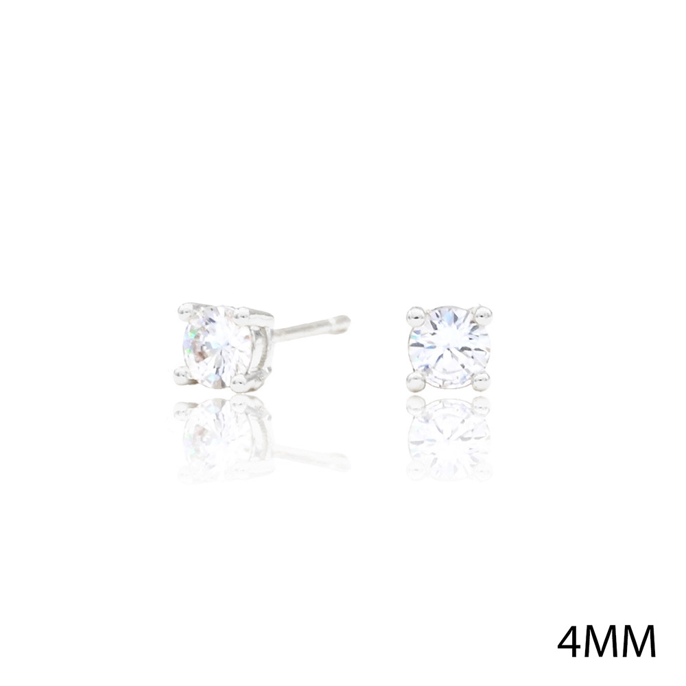 White Gold Dipped 4mm Round CZ Stone Stud Earrings