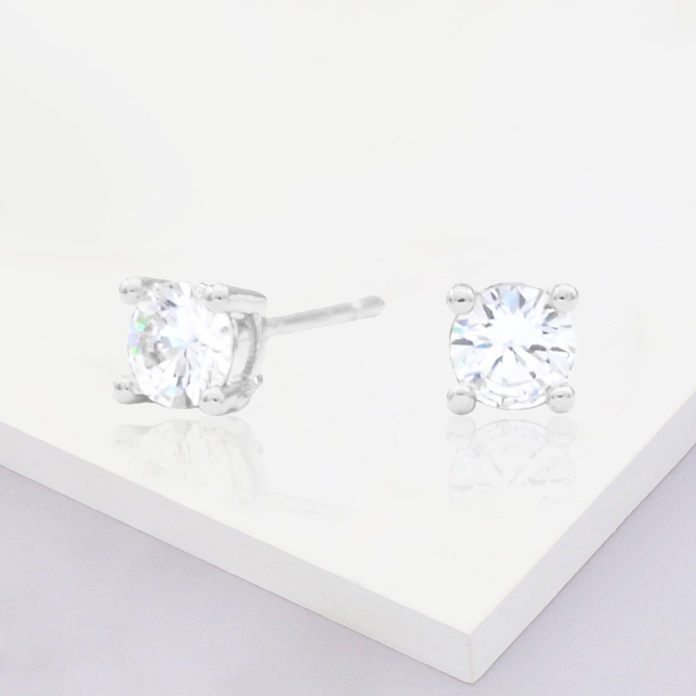 White Gold Dipped 5mm Round CZ Stone Stud Earrings
