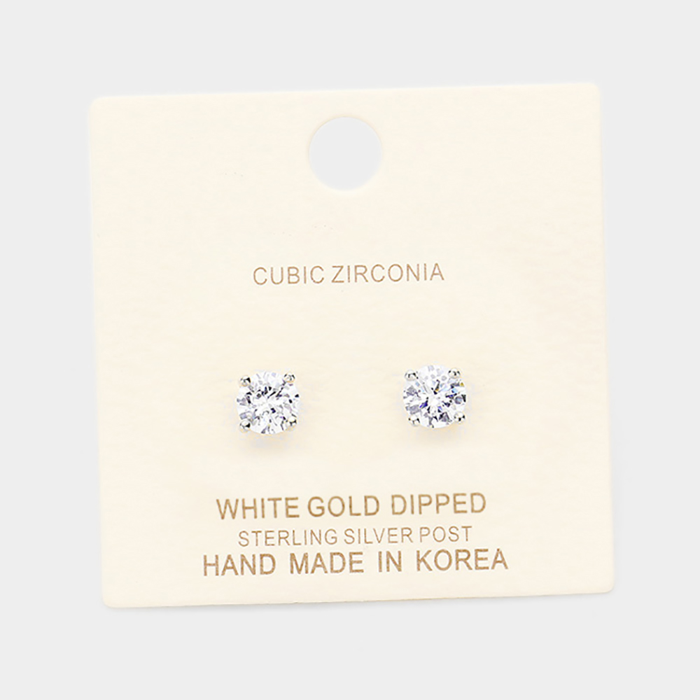 White Gold Dipped 6mm Cubic Zirconia Round Stud Earrings