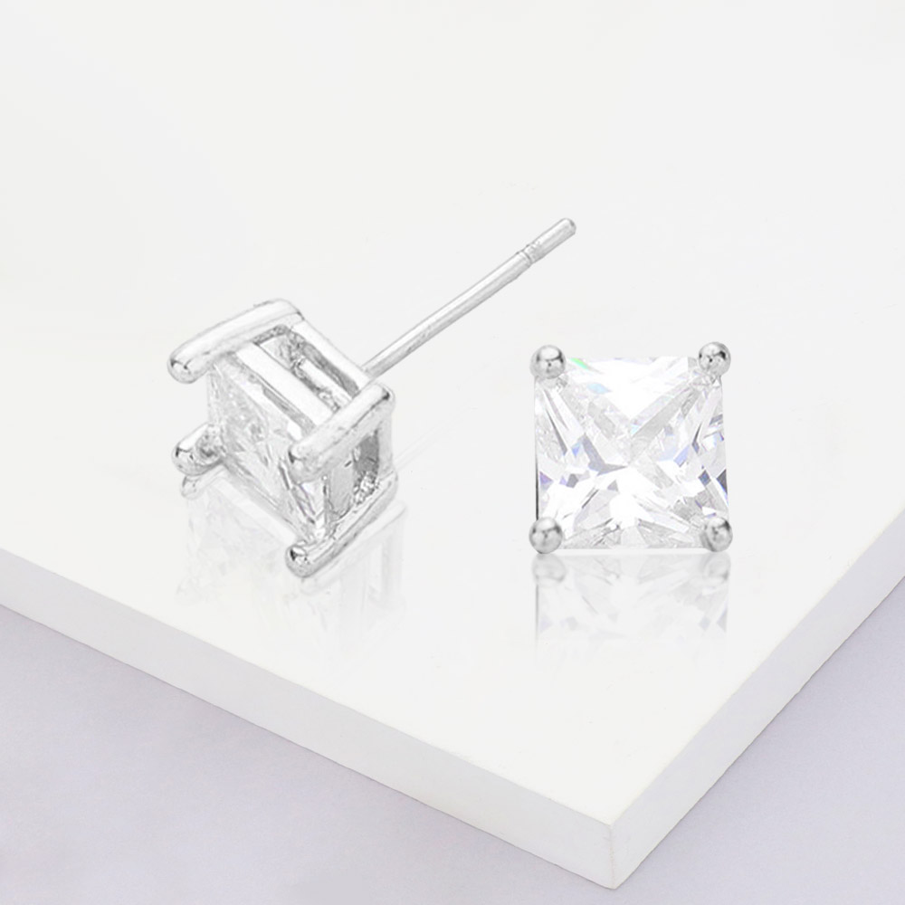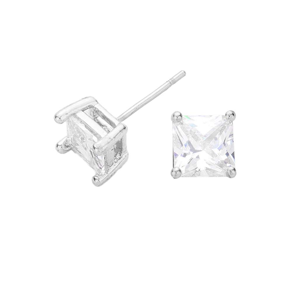 White Gold Dipped 6mm Square CZ Stone Stud Earrings
