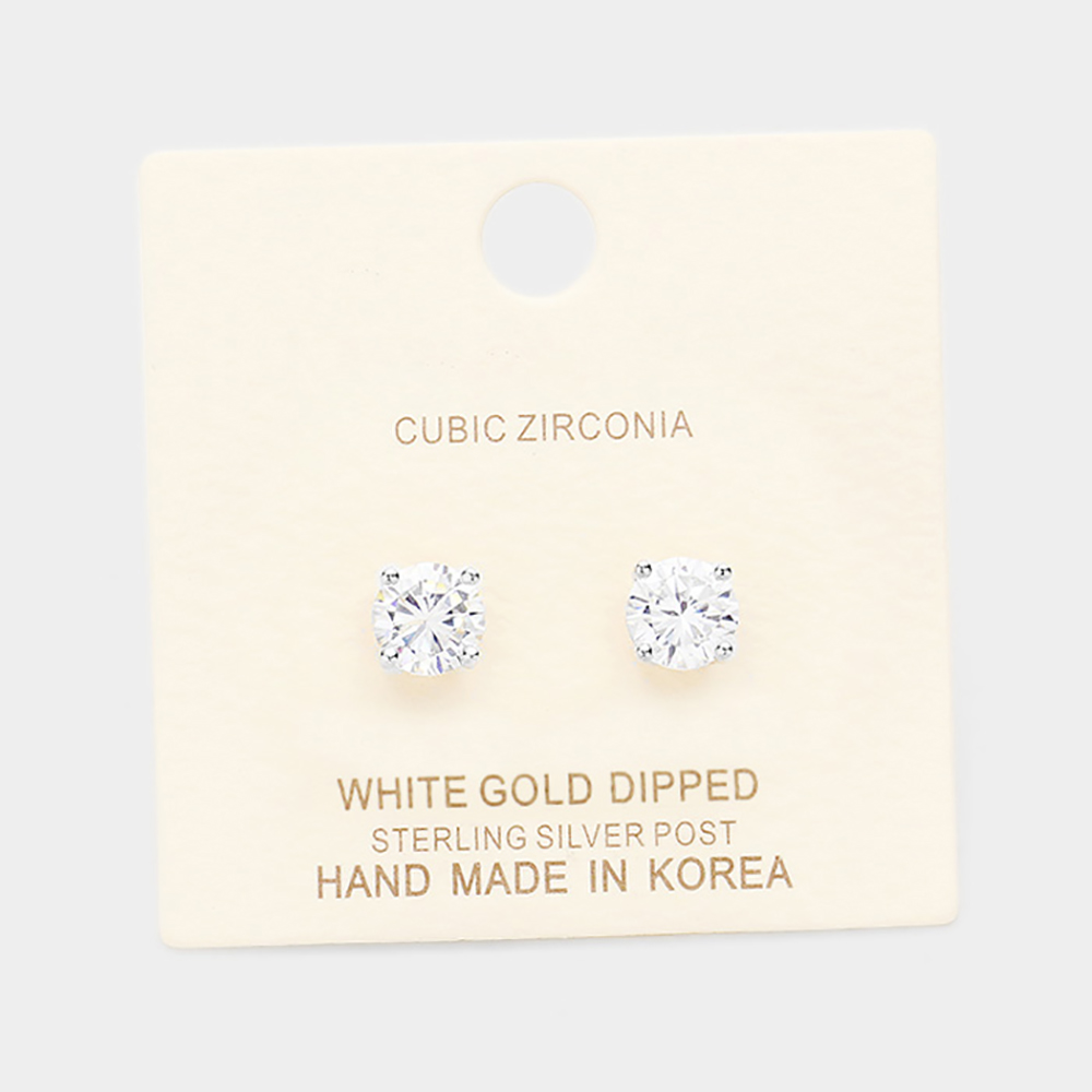 White Gold Dipped 6mm Cubic Zirconia Round Stud Earrings