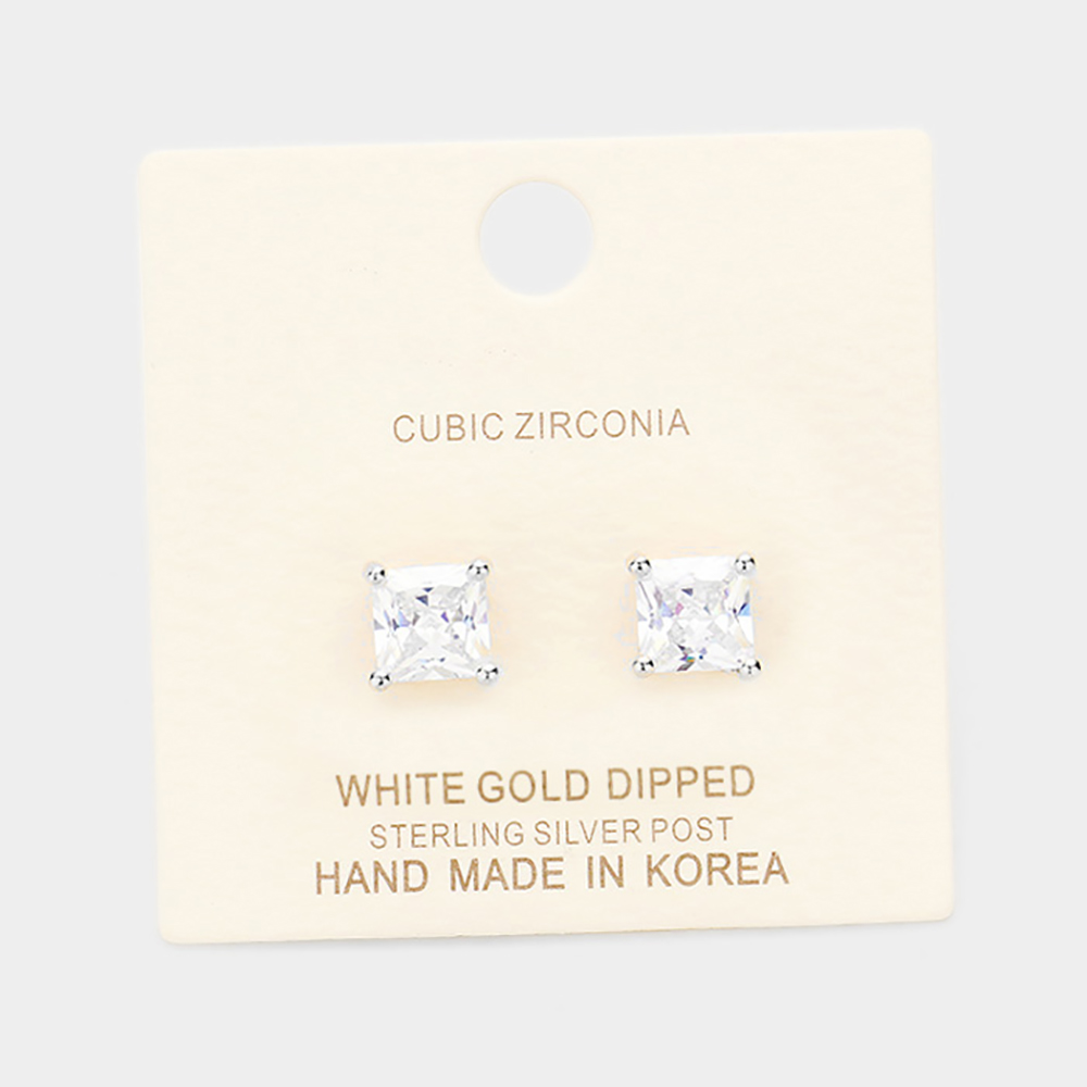 White Gold Dipped 7mm Cubic Zirconia Square Stud Earrings