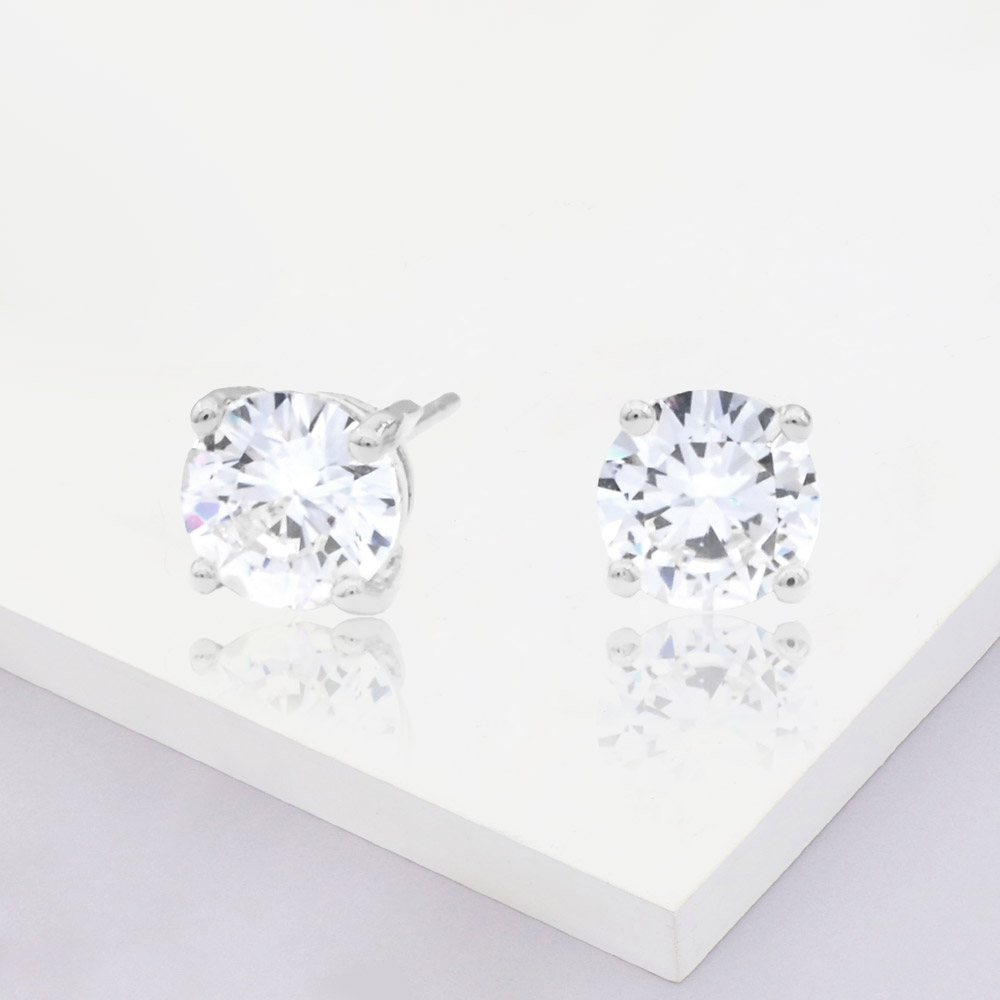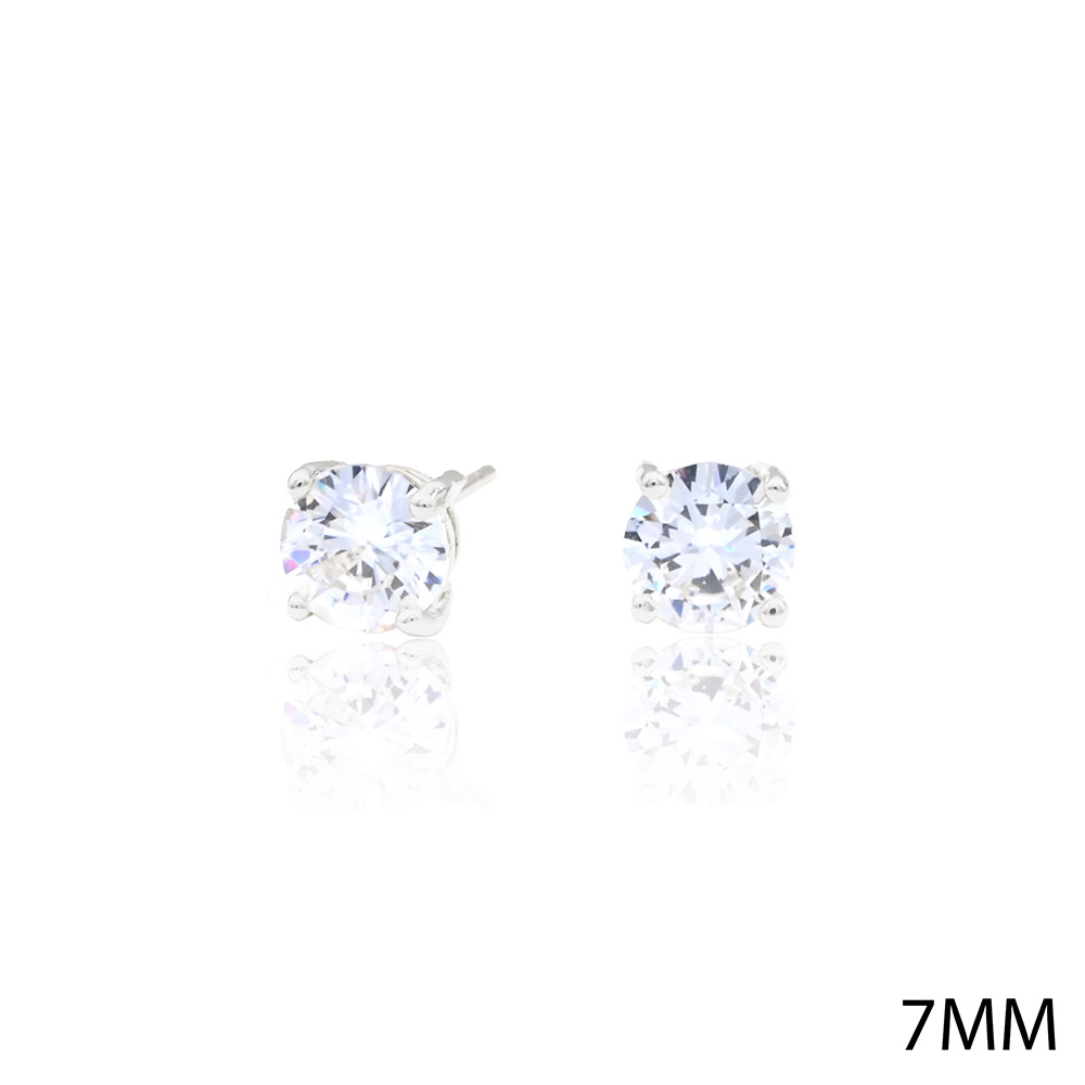 White Gold Dipped 7mm Round CZ Stone Stud Earrings