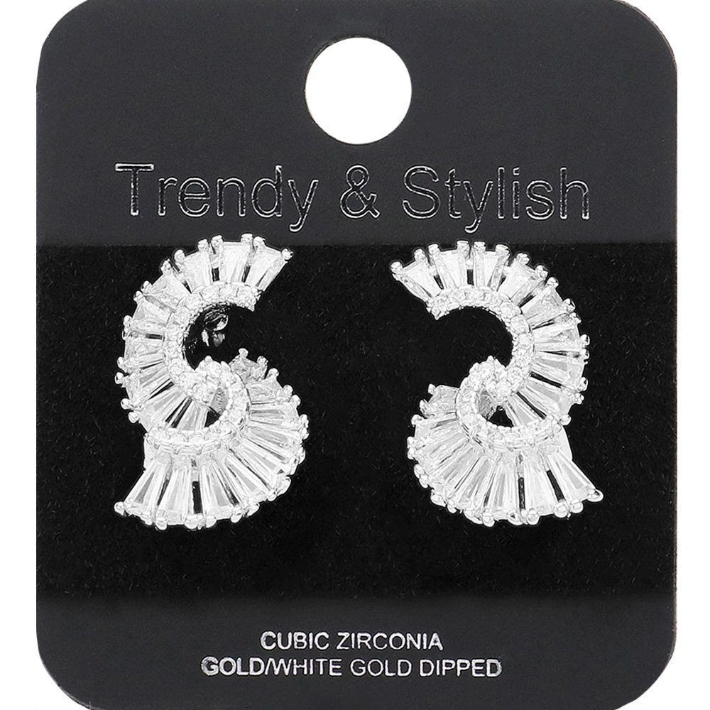 White Gold Dipped Abstract CZ Stone Embellished Stud Earrings