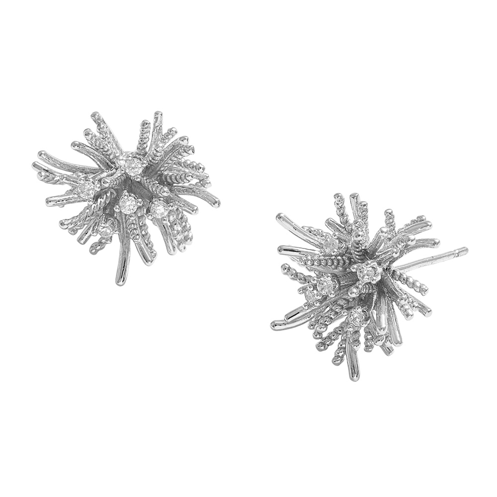 White Gold Dipped CZ Stone Accent Starburst Stud Earrings White Gold Dipped CZ Stone Accent Starburst Stud Earrings