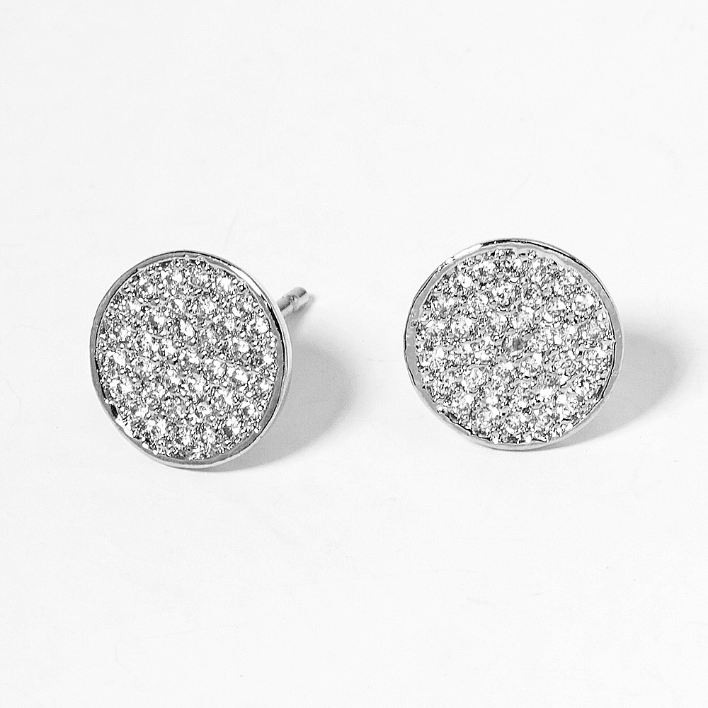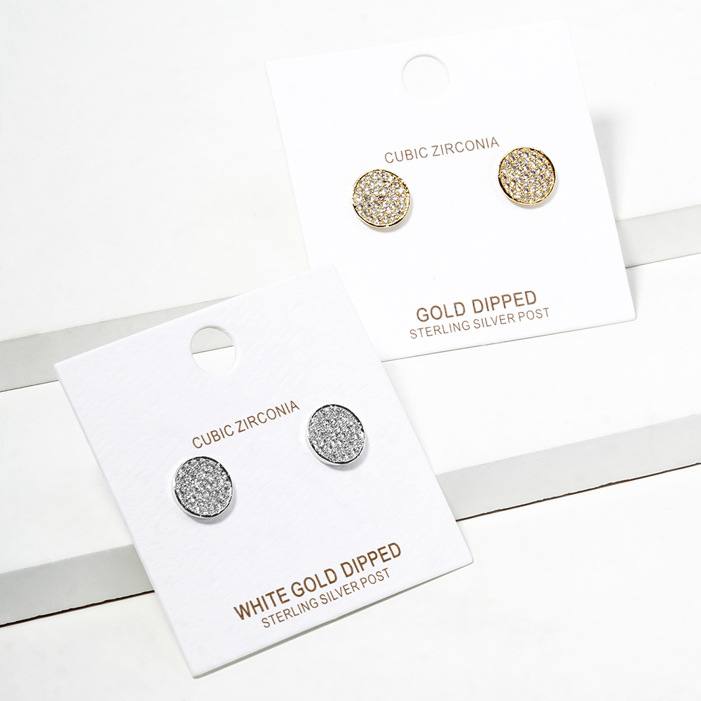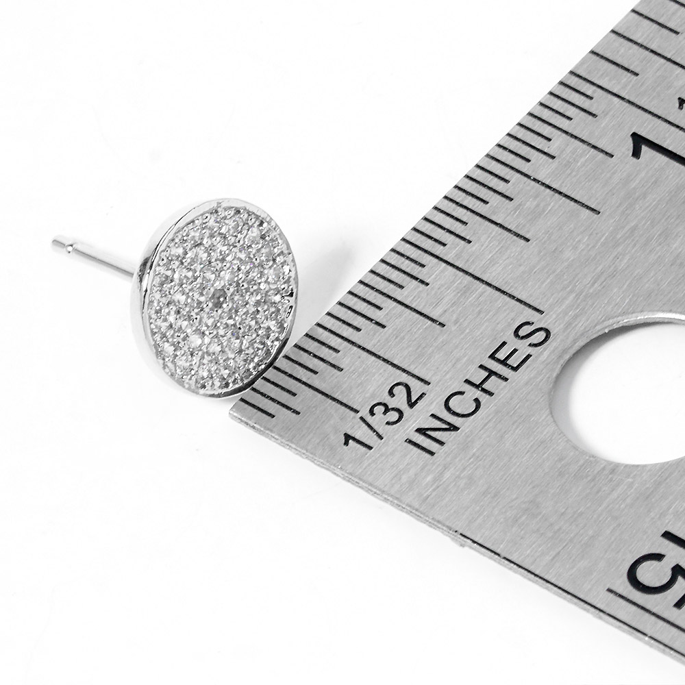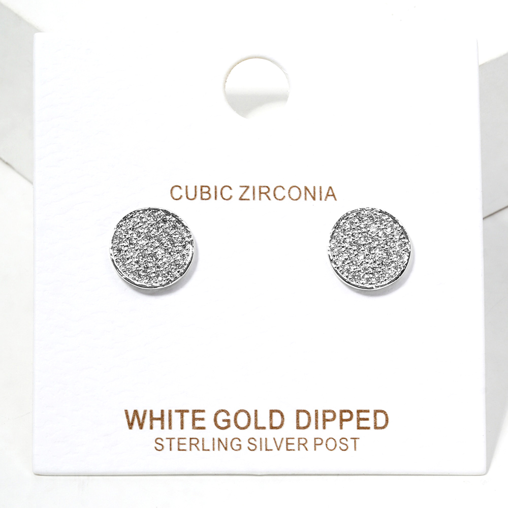 White Gold Dipped CZ Stone Paved Disc Stud Earrings