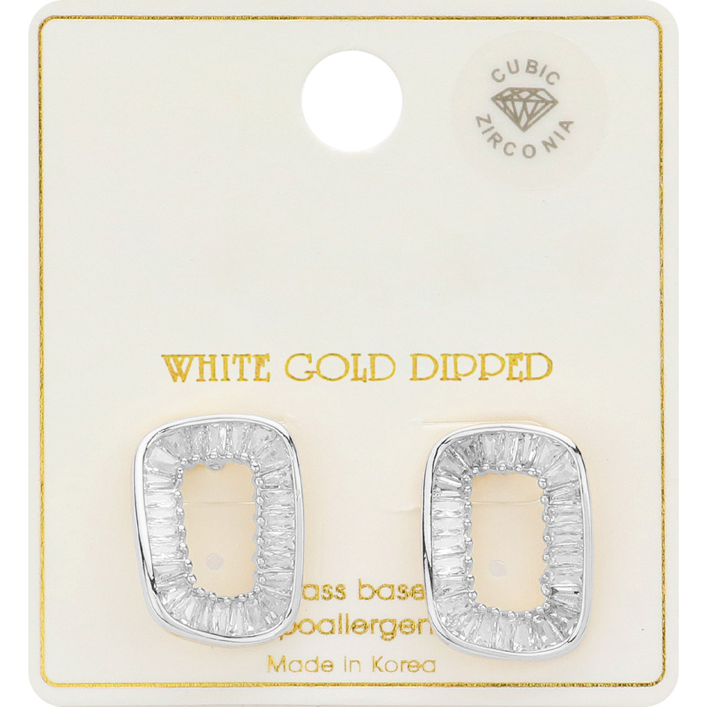 White Gold Dipped CZ Stone Paved Hollow Oval Stud Earrings