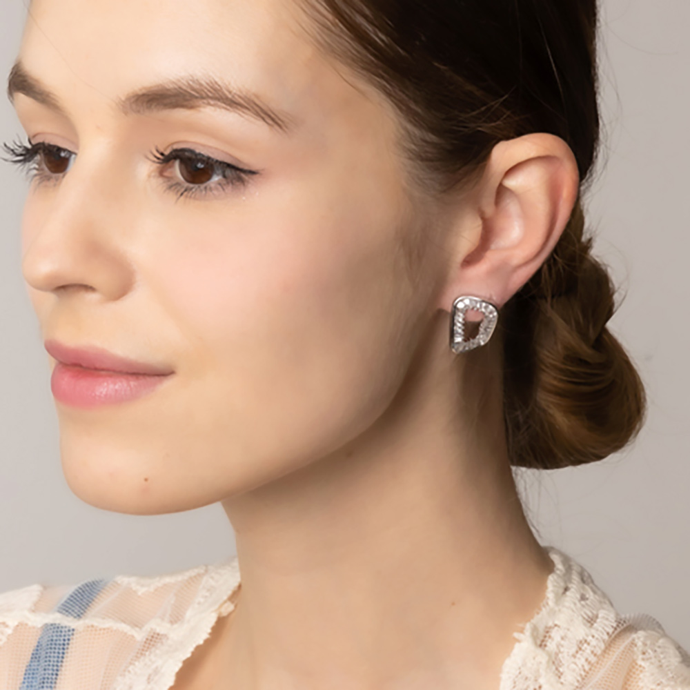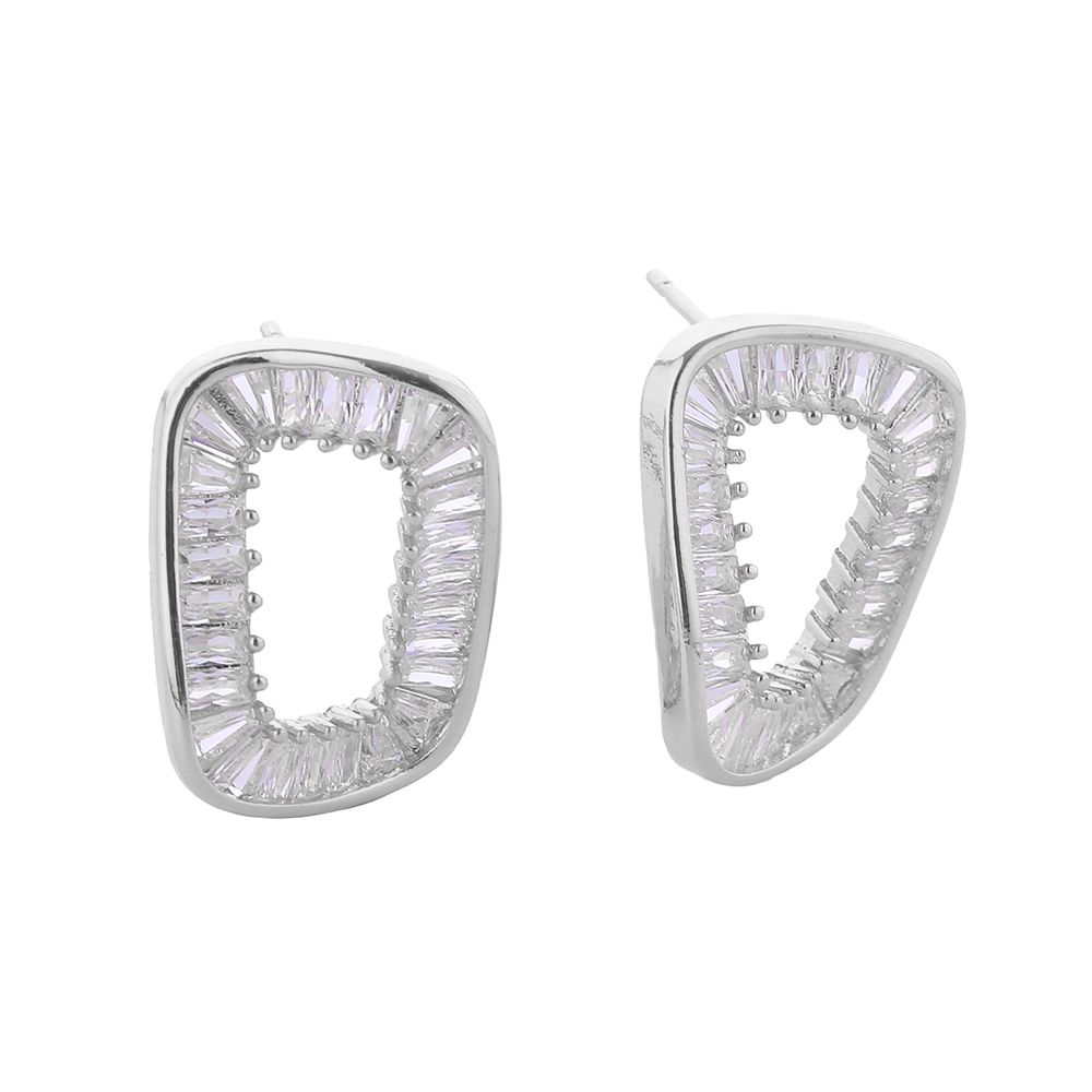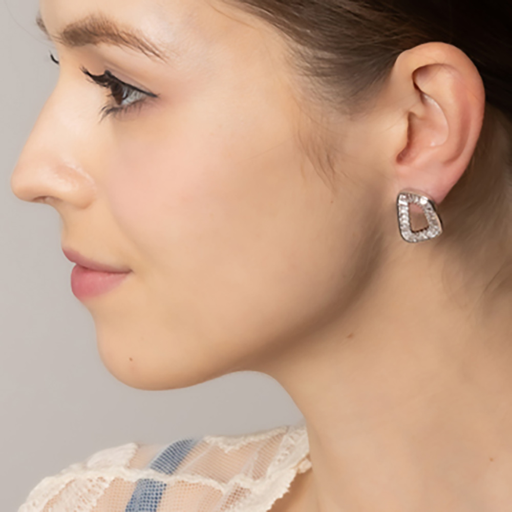 Iridescent Rectangular Rhinestone Evening Stud Earrings