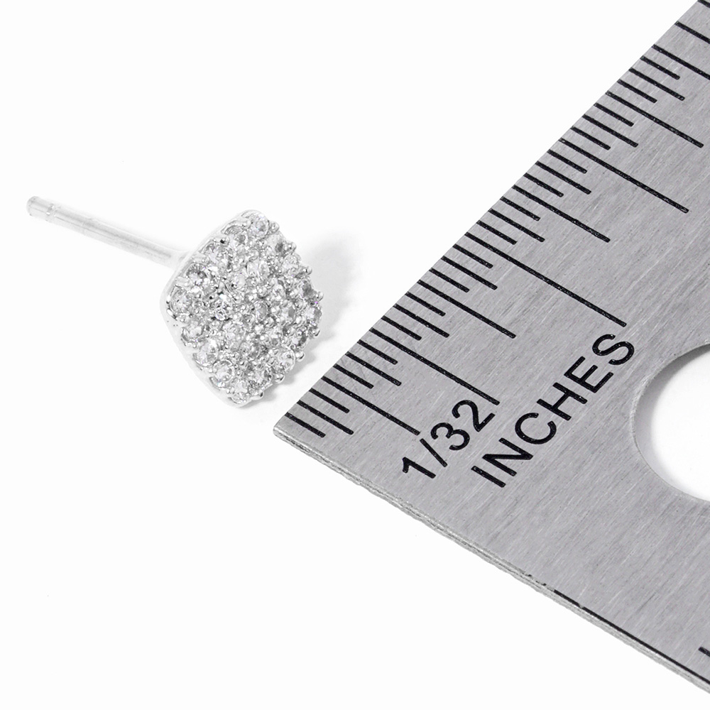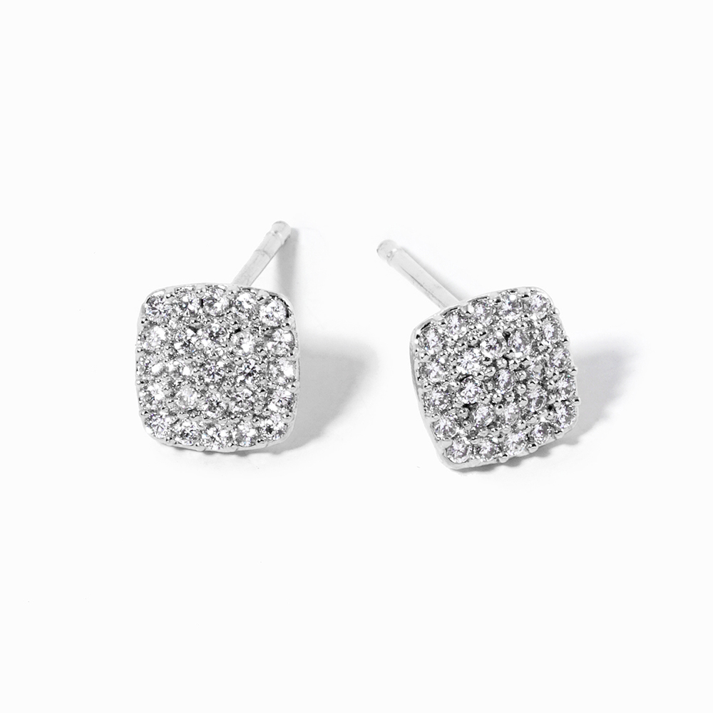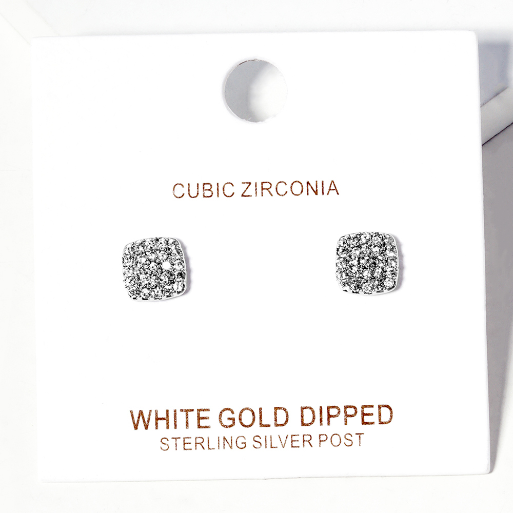White Gold Dipped CZ Stone Paved Square Stud Earrings