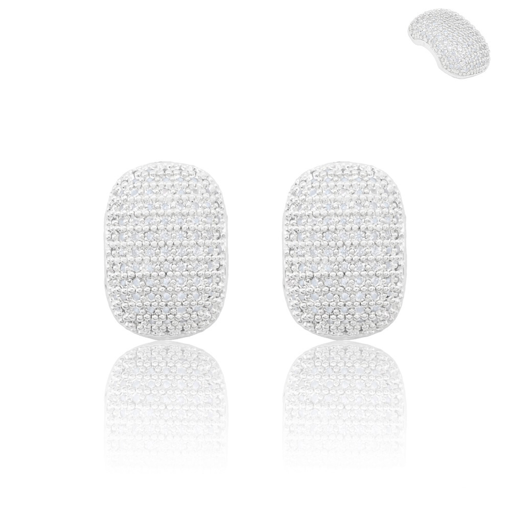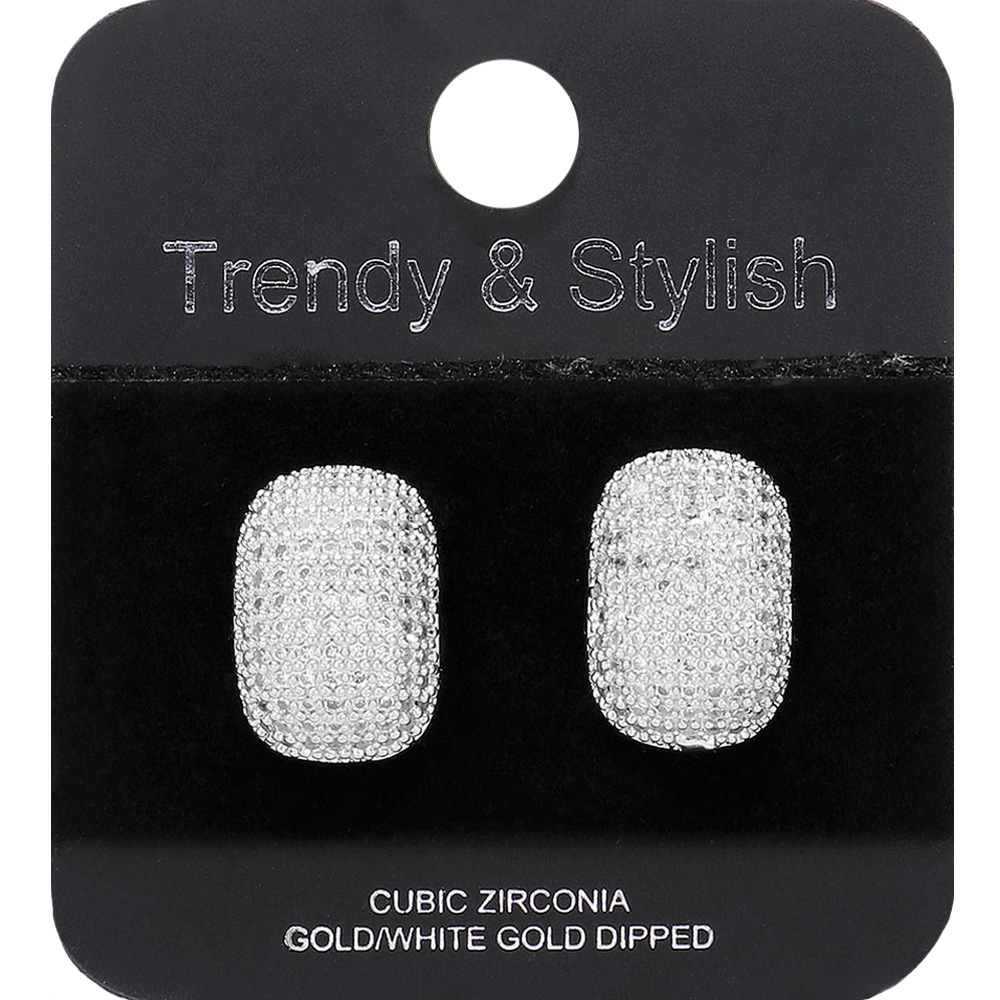 White Gold Dipped CZ Stone Paved Stud Earrings