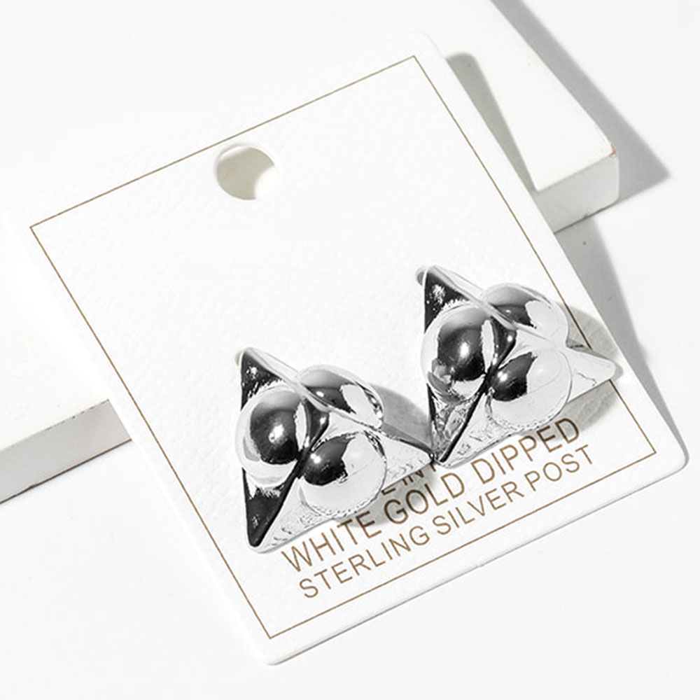 White Gold Dipped Geometric Triangle Stud Earrings