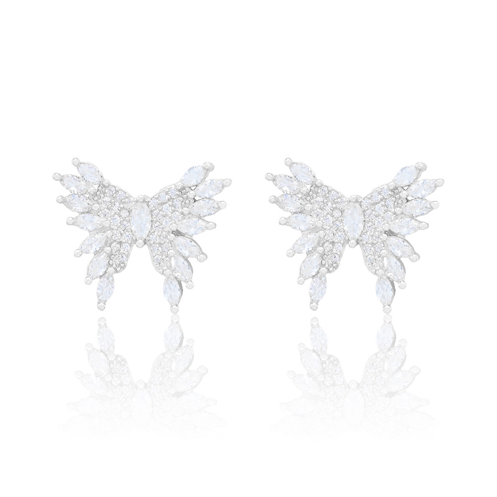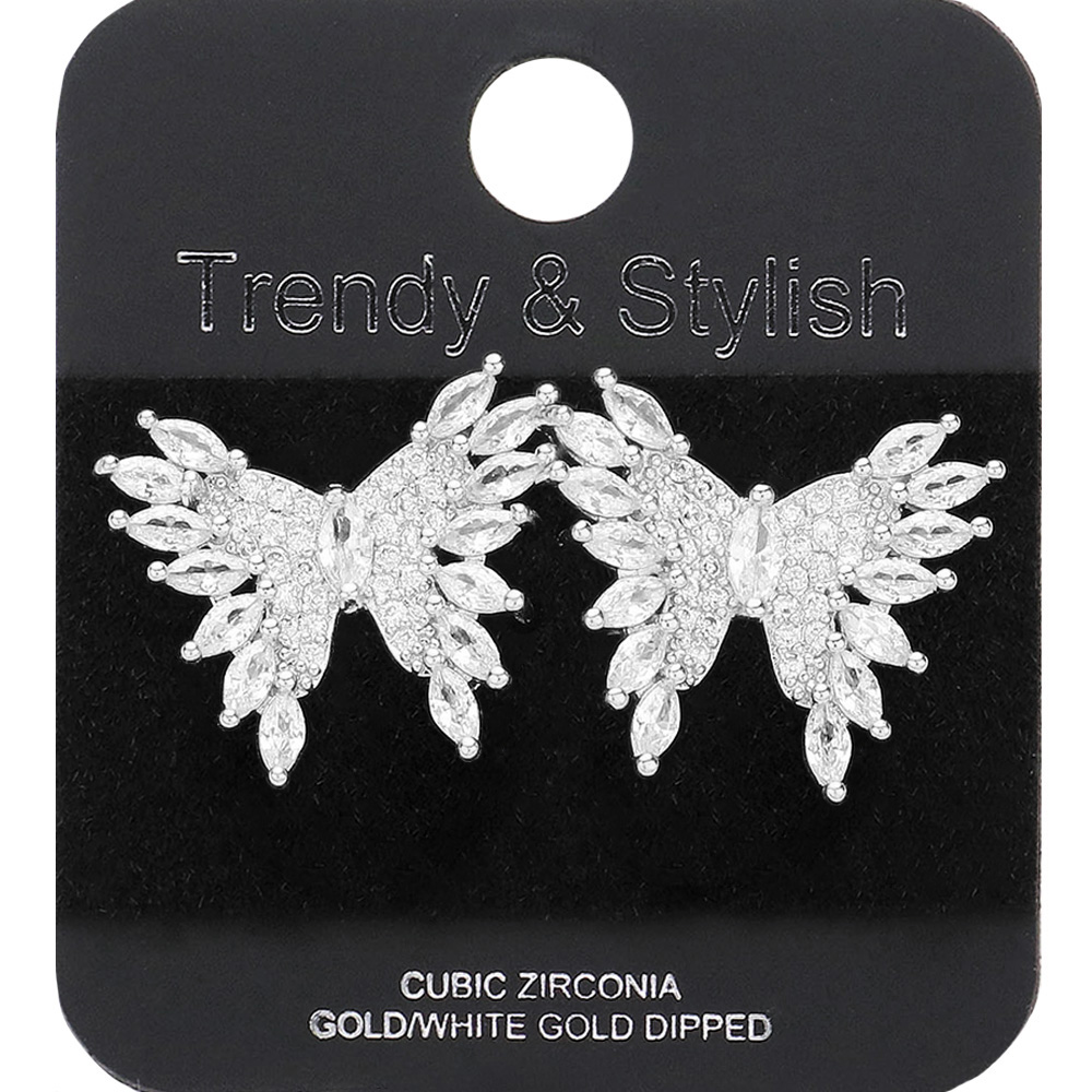 White Gold Dipped Marquise CZ Stone Embellished Butterfly Stud Earrings