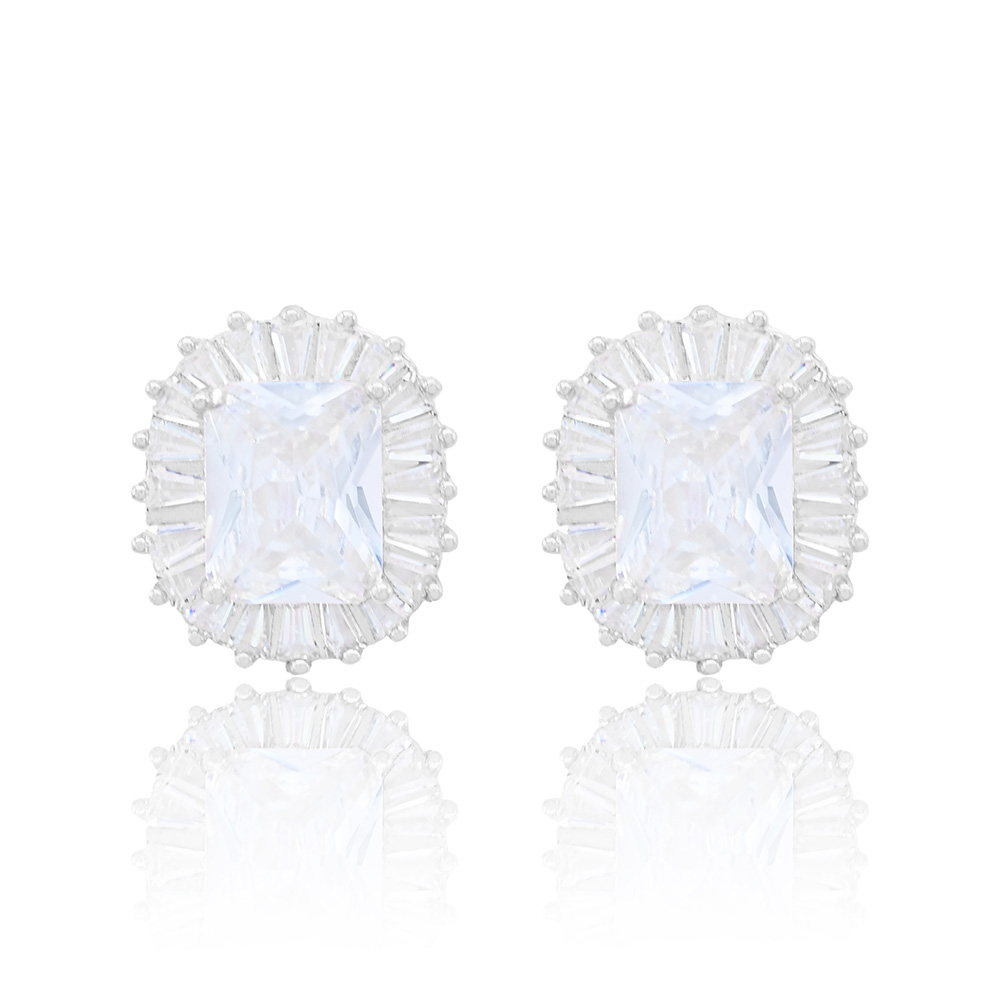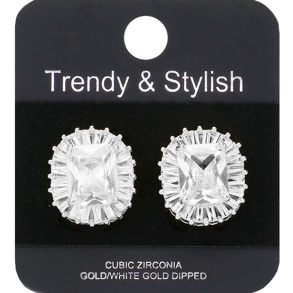 White Gold Dipped Rectangle CZ Stone Pointed Stud Earrings