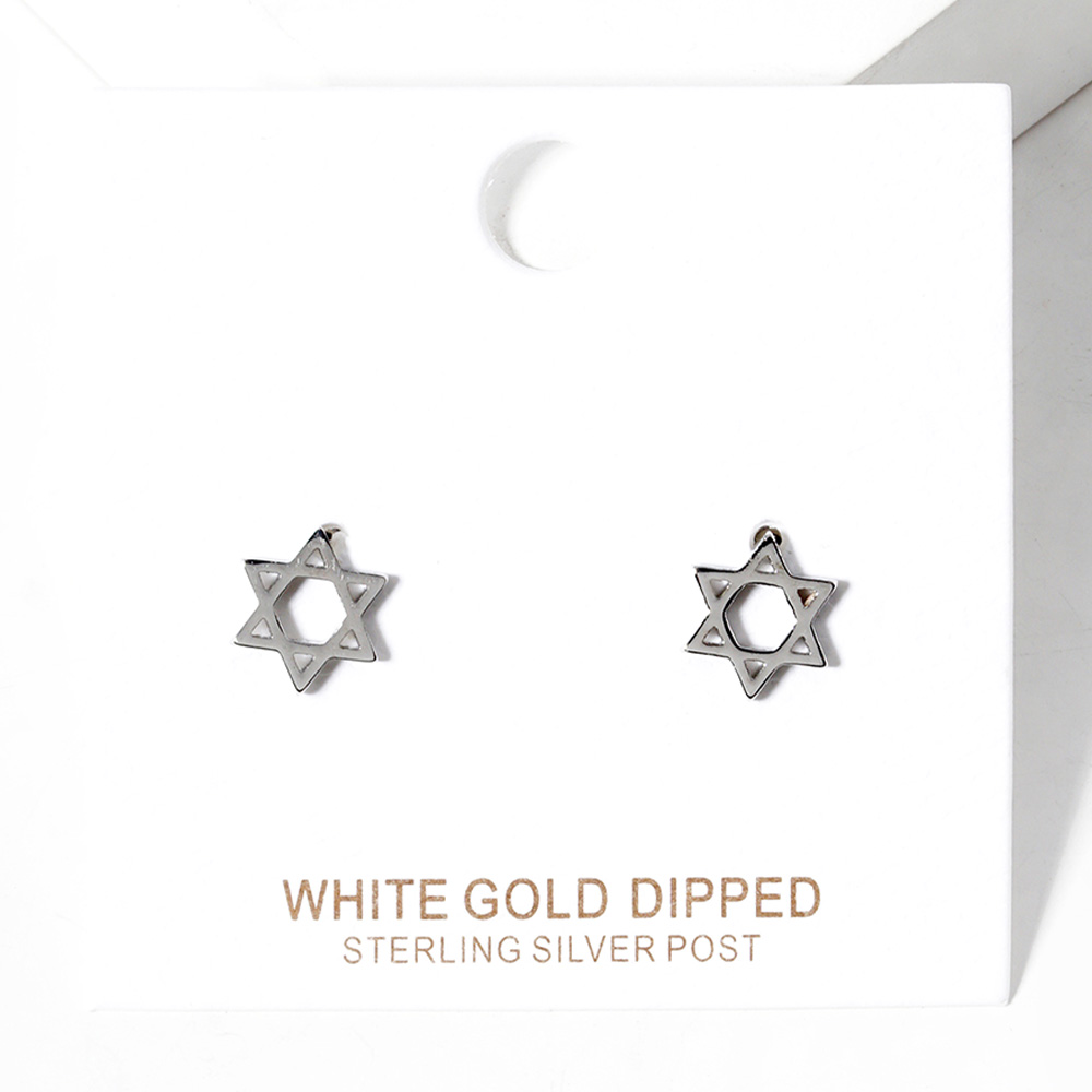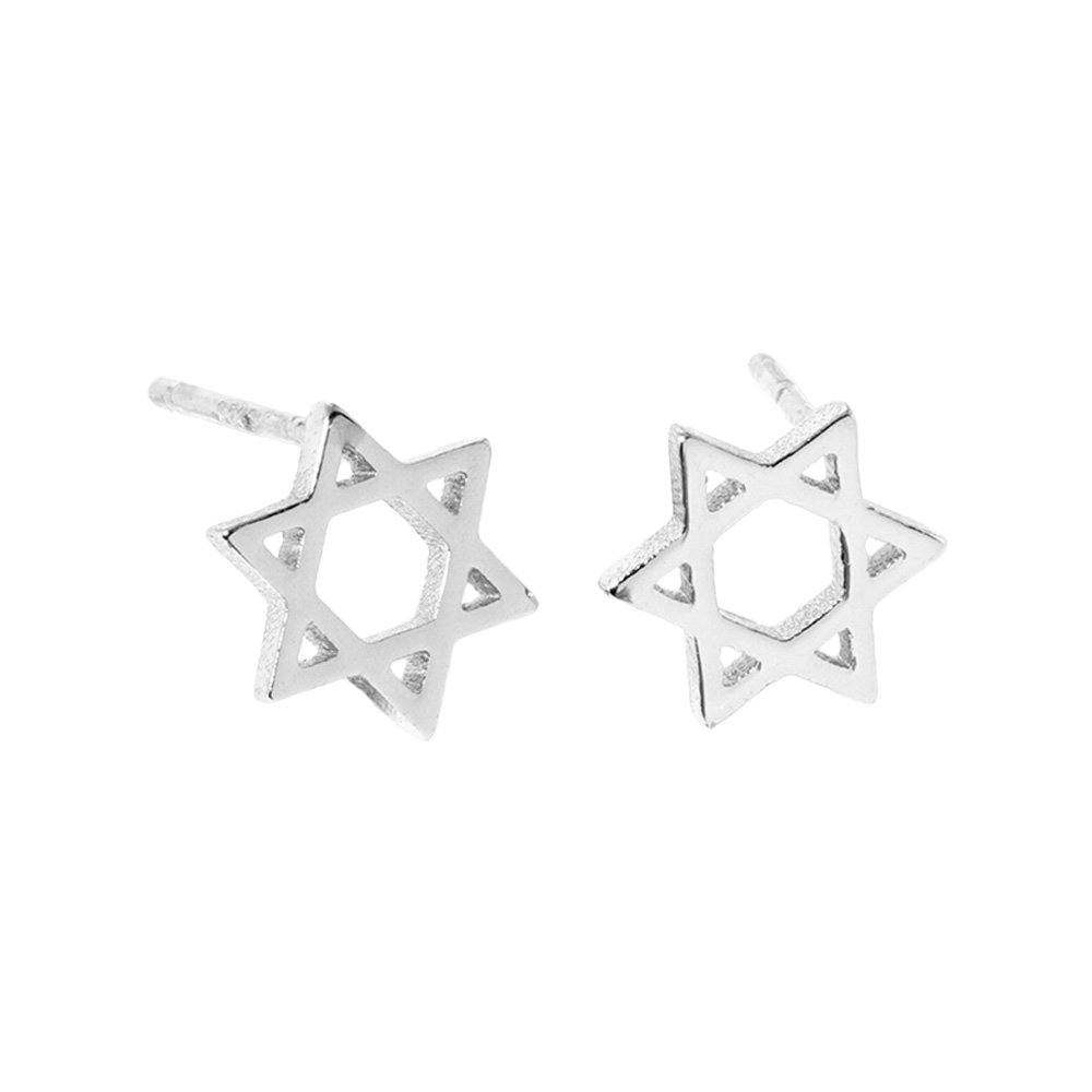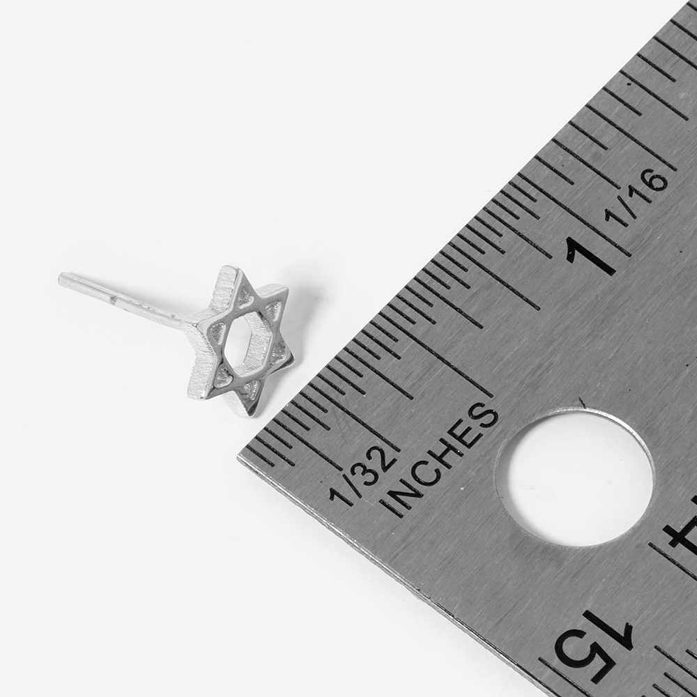 Details • Size : 0.3" X 0.4" • Post Back • Embrace tradition with these Star of David stud earrings featuring a sleek and timeless design. A meaningful accessory symbolizing faith and spirituality, perfect for everyday wear, holidays, or as a thoughtful gift for loved ones. • Lead and Nickel Compliant • Made In Korea • Sterling Silver Post