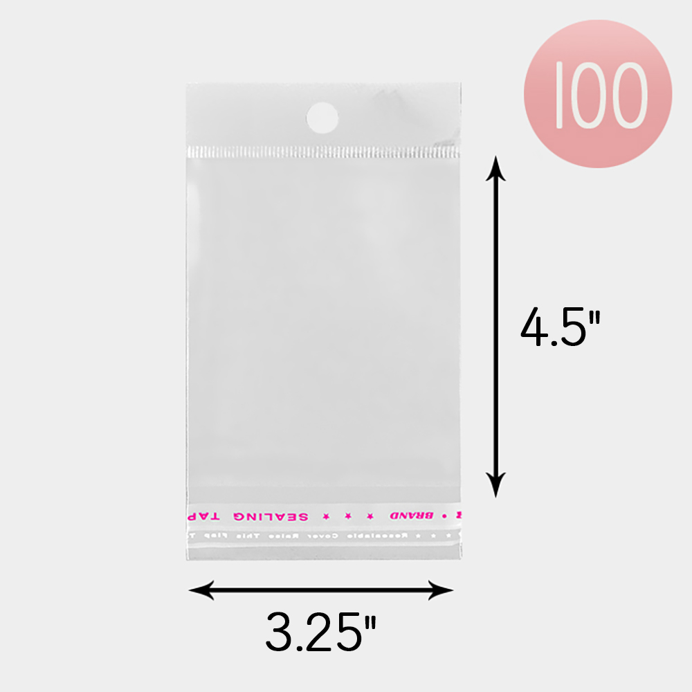 100PCS - 3.25" X 4.25" Clear plastic jewelry bags
