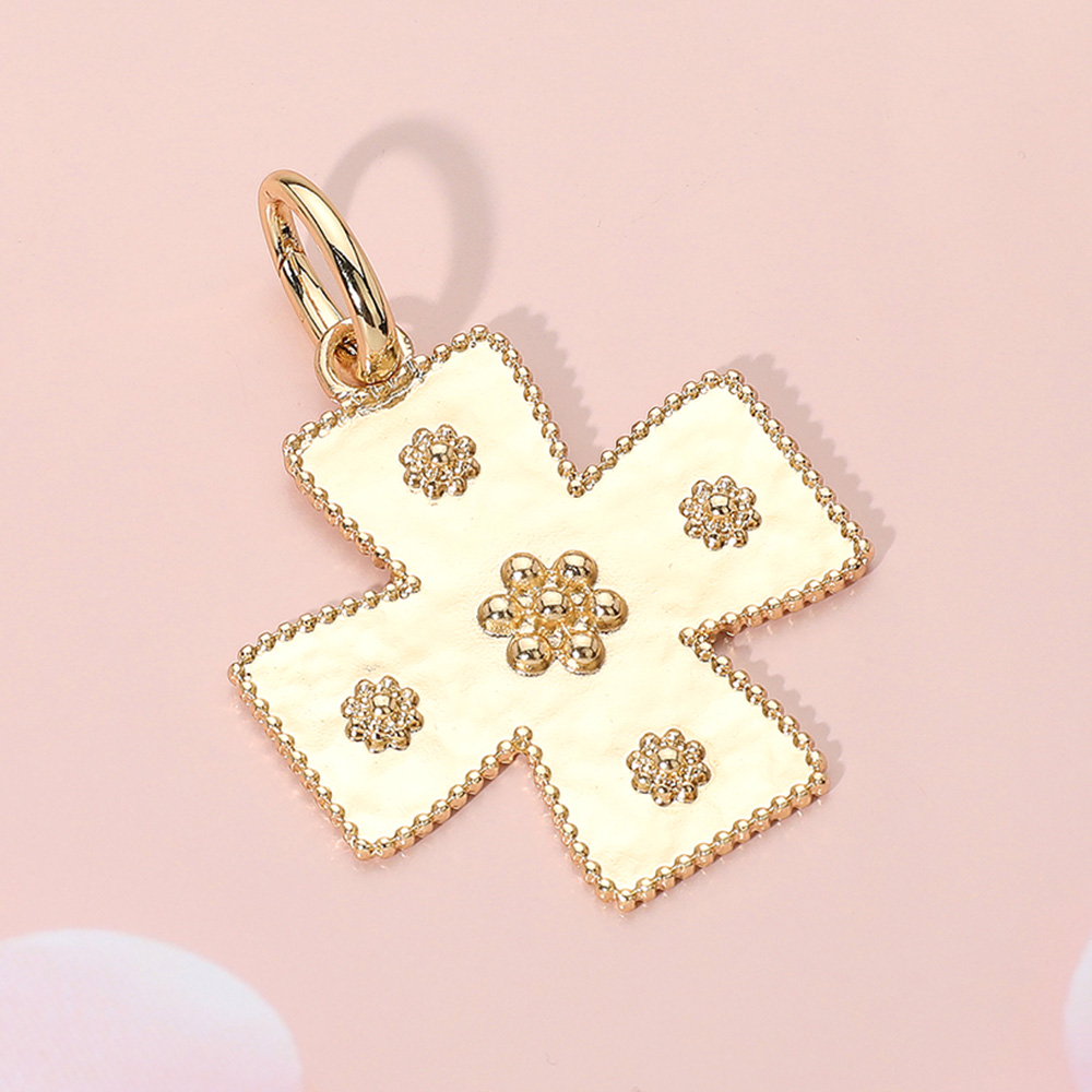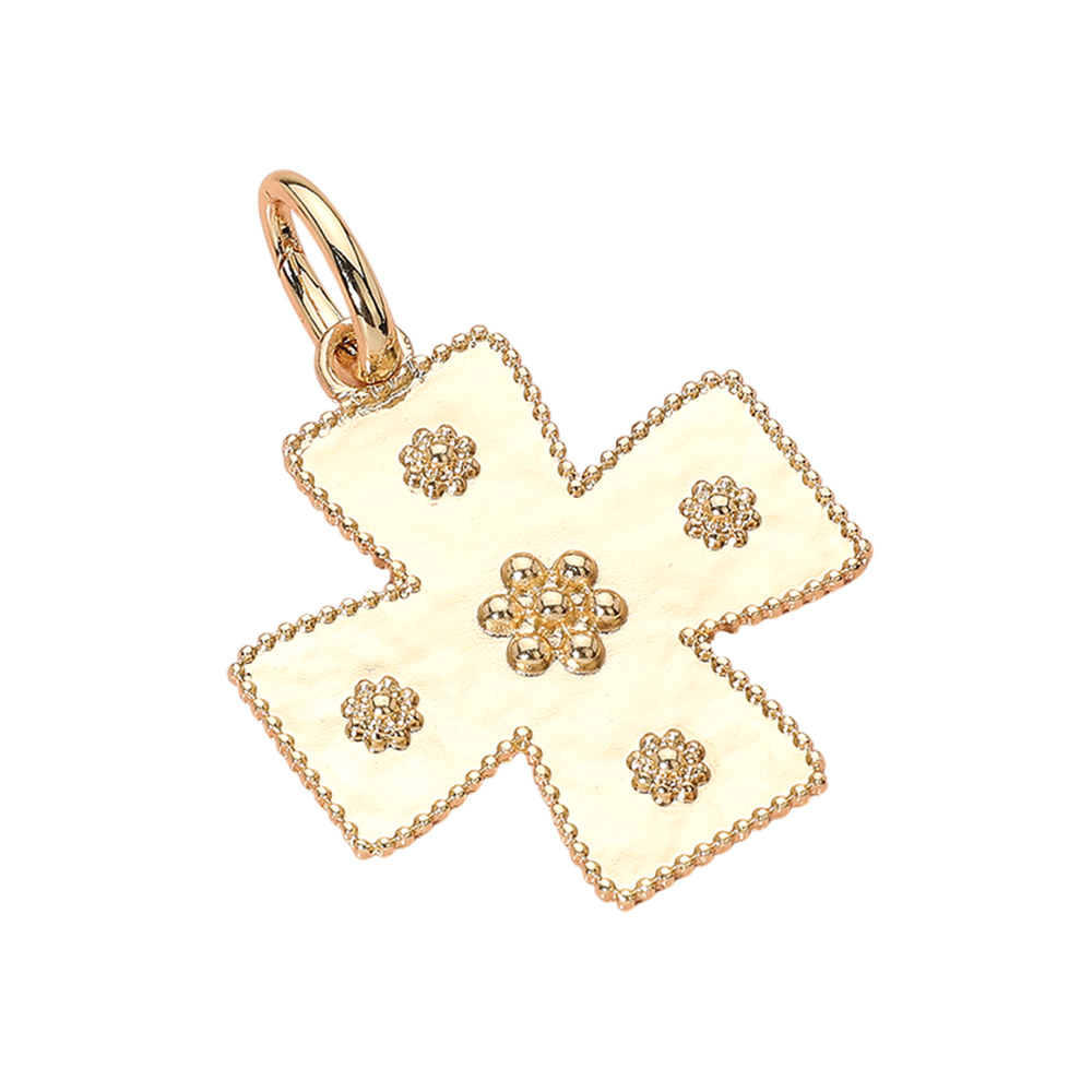 Details • Size : 2.5" L, 1.75" X 2" • Elegant X-shaped charm featuring a detailed floral motif and fine beaded border. Perfect for customizing bracelets, necklaces, or personal accessories.