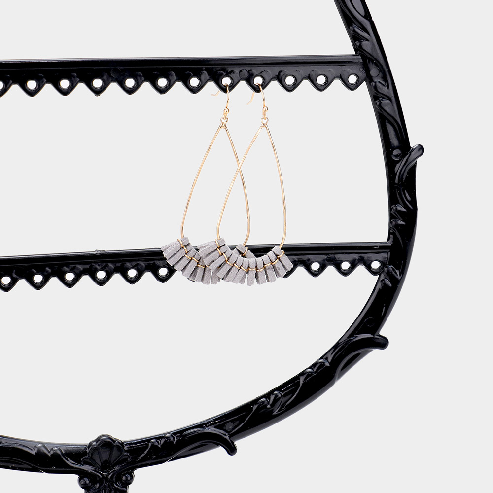 Details • Size : 8" x 11" • Earring not included • Graceful harp-style jewelry stand with multiple horizontal tiers for organizing earrings and accessories. Intricate detailing and stable base make it perfect for vanity tops or retail counters. Showcases jewelry beautifully while keeping items tangle-free.