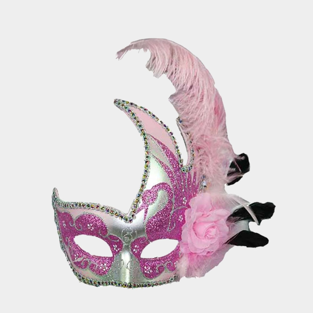 • Elegant Venetian-style masquerade mask featuring intricate patterns, rhinestone trim, and dramatic feathers. Perfect for costume parties, Mardi Gras, and masquerade balls.