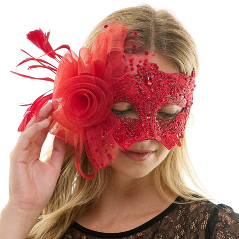 Floral Lace Feather Tulle Masquerade Halloween Mask
