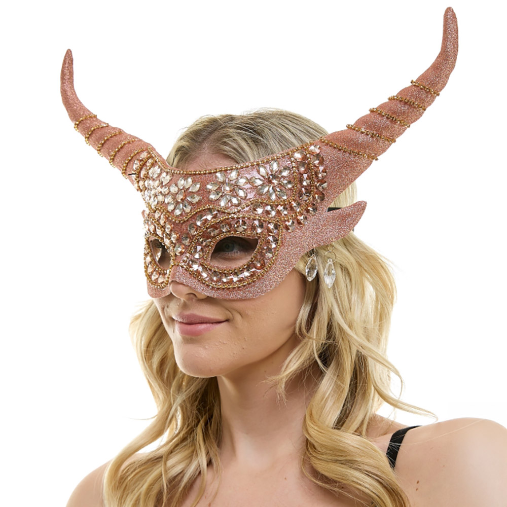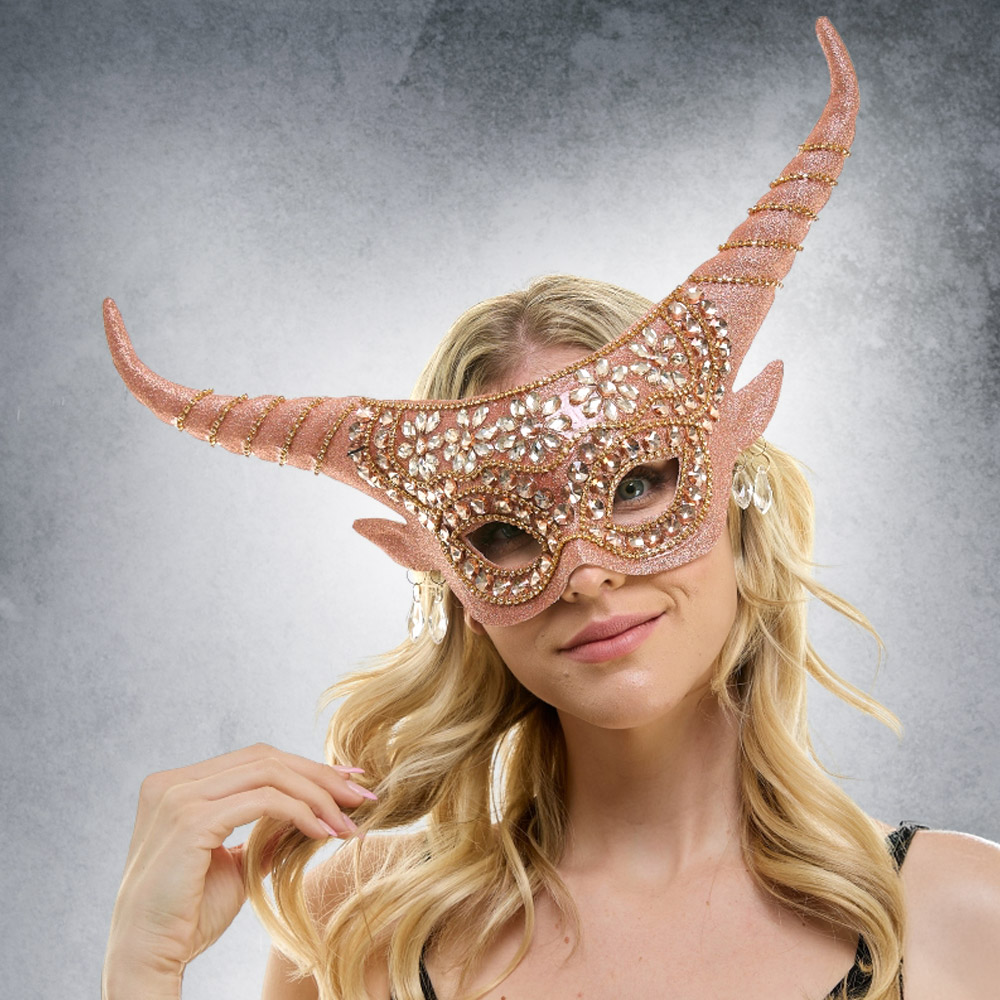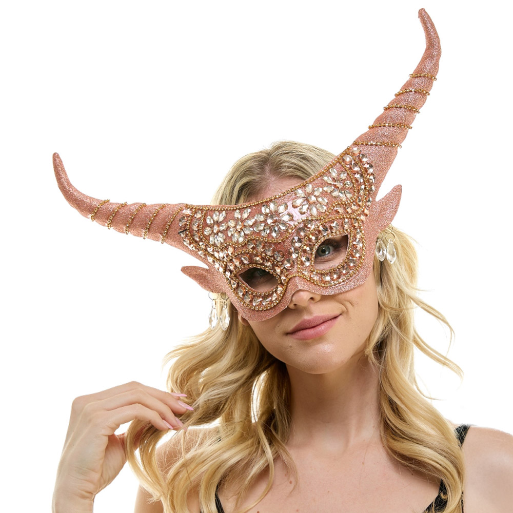 Details • Size : One Size • Elevate your costume with this fantasy-inspired masquerade mask featuring dramatic horns and intricate crystal detailing. Perfect for masquerade balls, cosplay, and themed events.