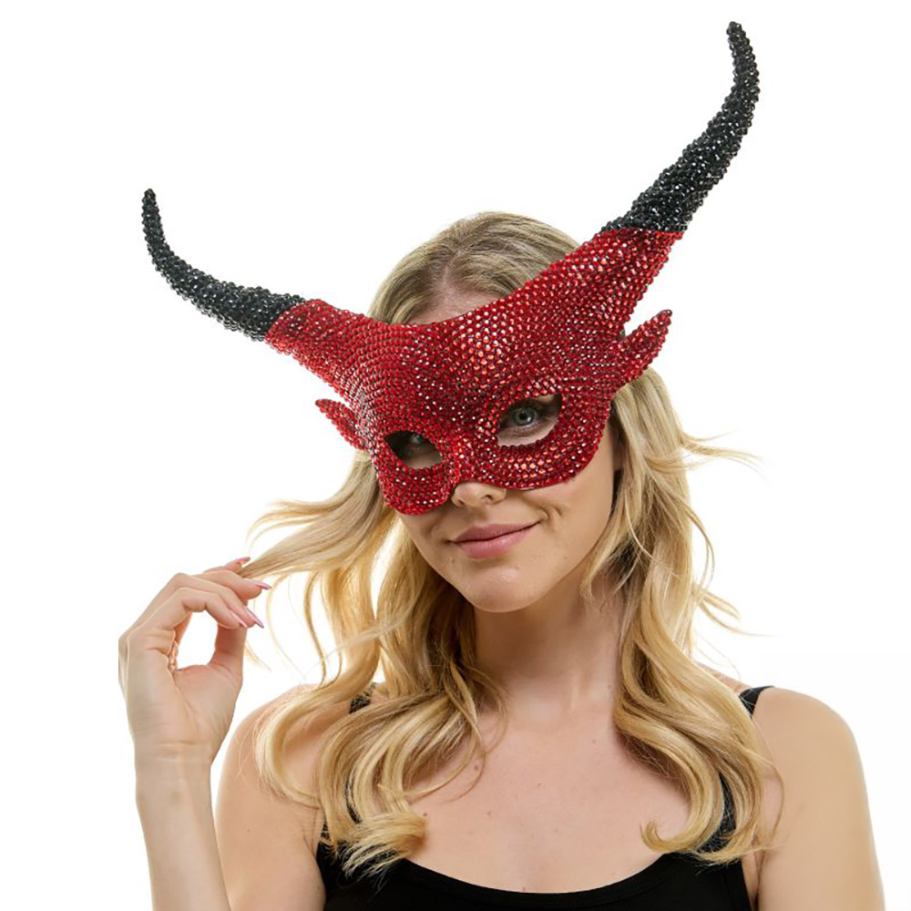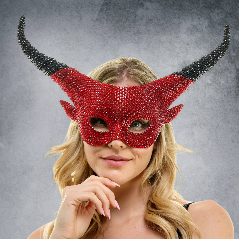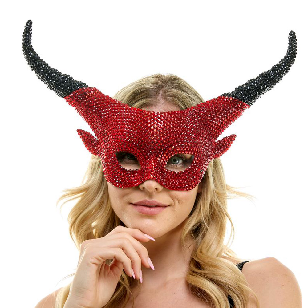 Glamorous Rhinestone Embellished Devil Horn Costume Mask