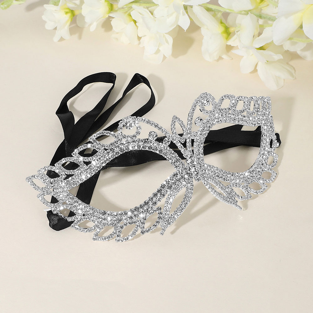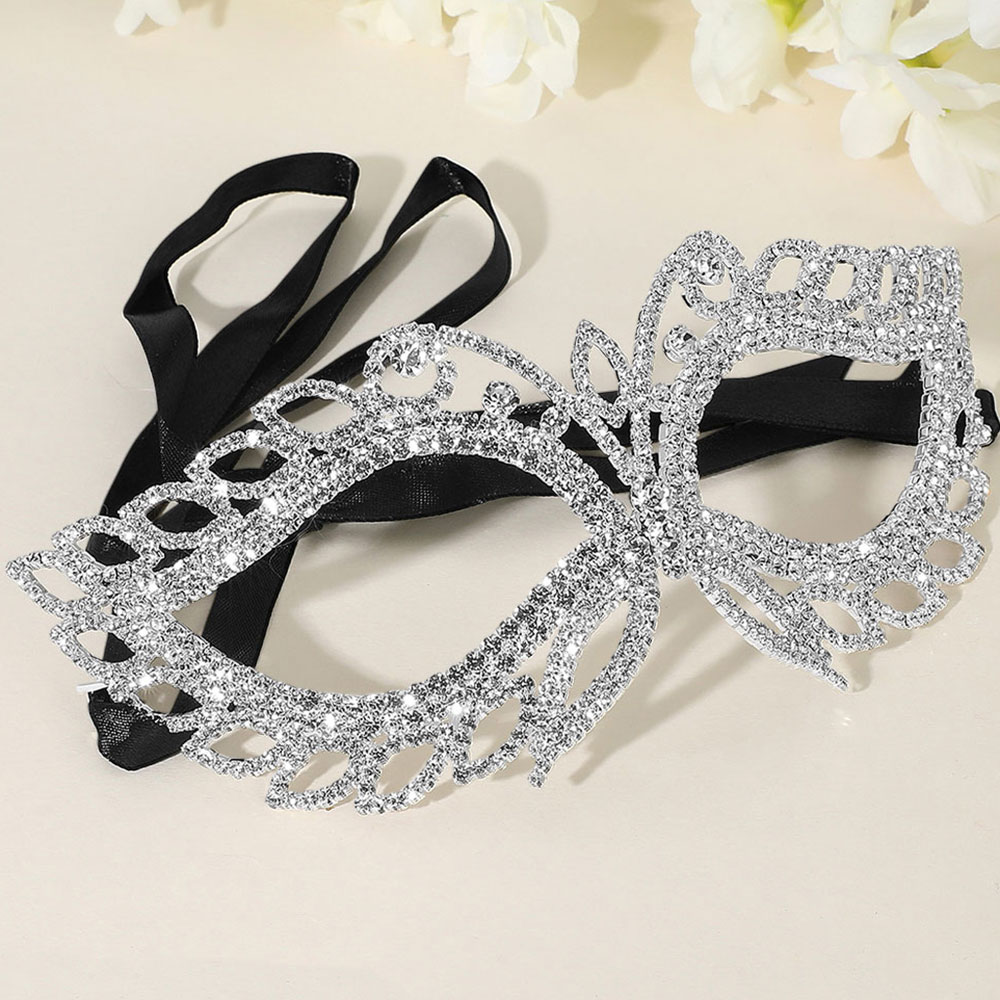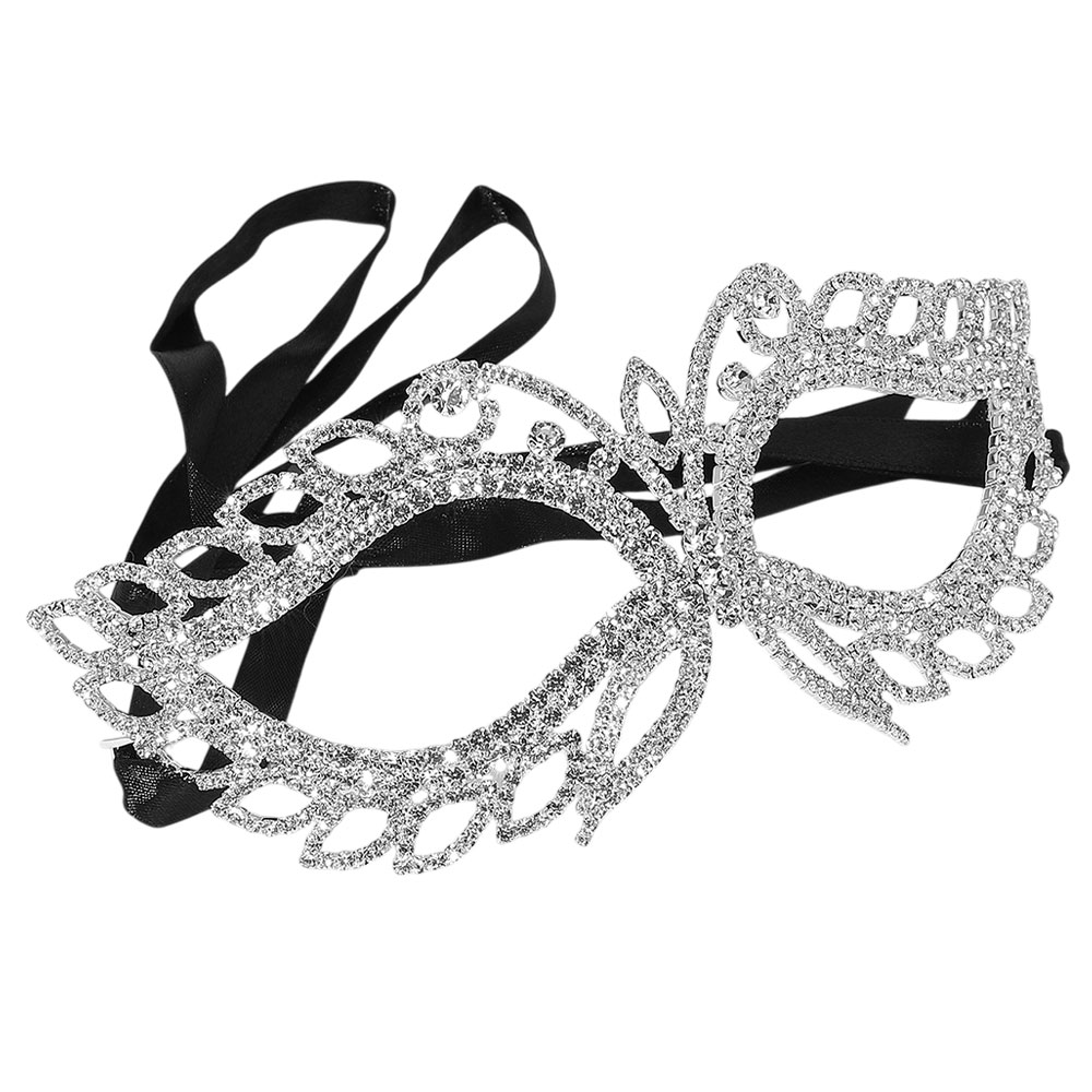 Rhinestone Paved Open Marquise Around Cat Eye Masquerade Mask