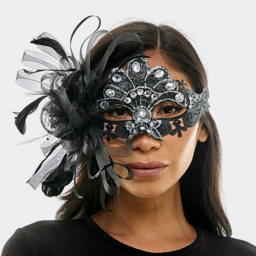 Teardrop Stone Embellished Flower Feather Fairy Lace Masquerade Mask