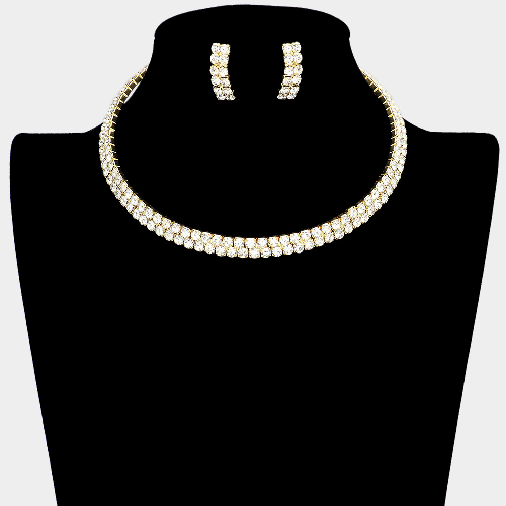 2-Row crystal Rhinestone Banded Open Choker Necklace