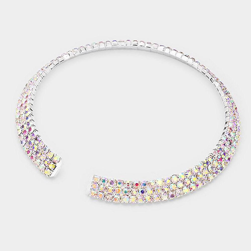 Round Stone Centered Rhinestone Paved Flower Stretch Ring