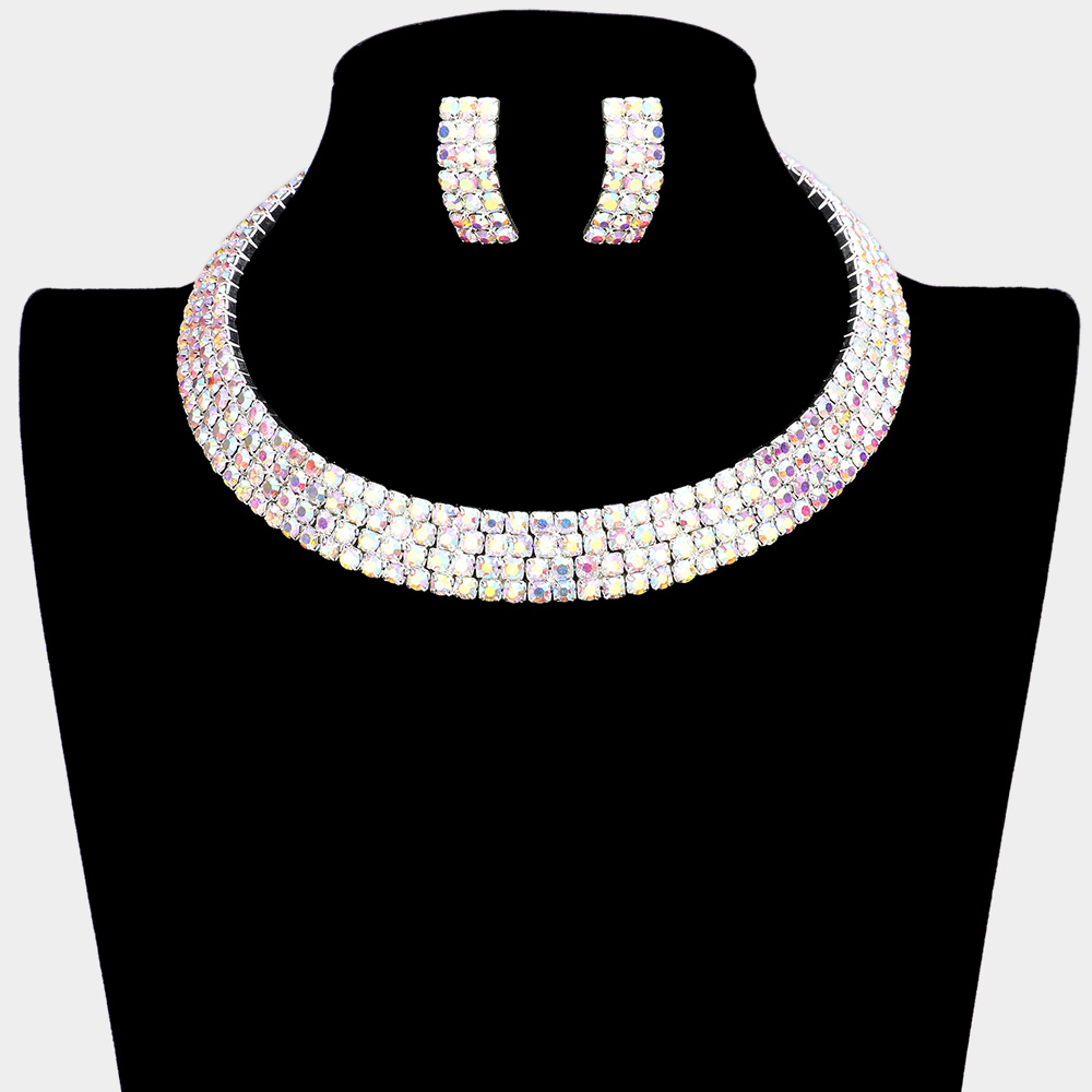 4-Row crystal Rhinestone Banded Open Choker Necklace