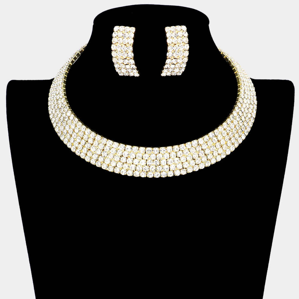 5Rows Crystal Rhinestone Choker Cuff Necklace