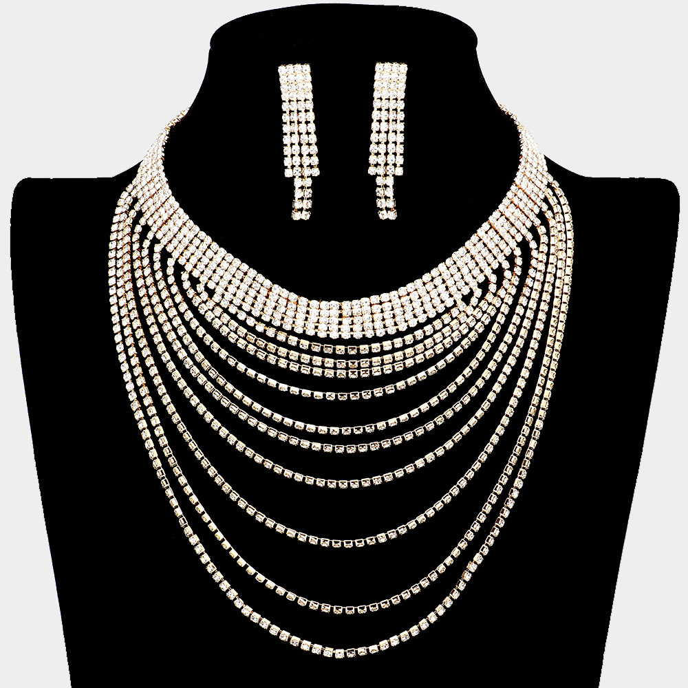 Crystal Rhinestone Multi Layered Evening Choker Necklace