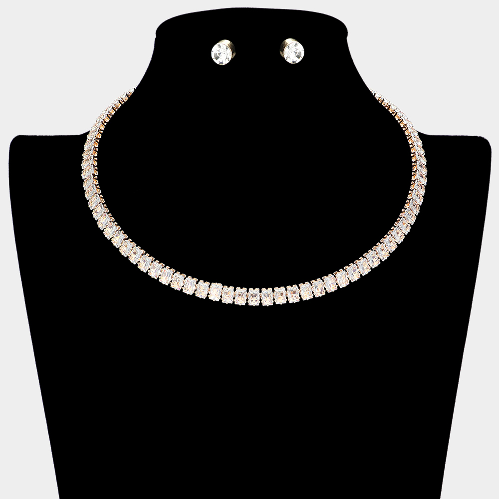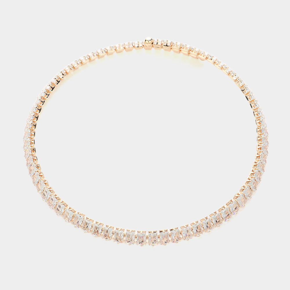 Emerald Cut Stone Cluster Evening Choker Necklace