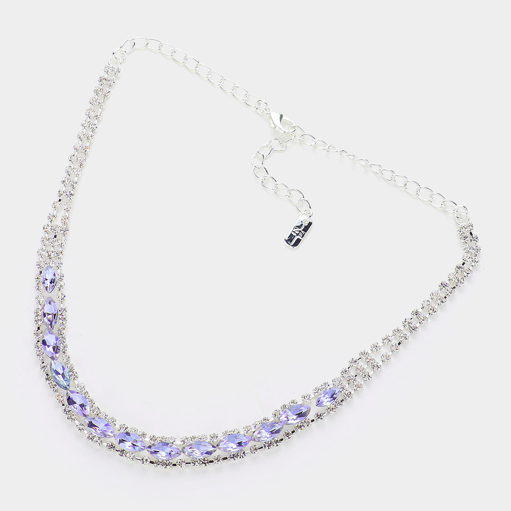 Marquise Stone Accented Rhinestone Paved Evening Choker Necklace