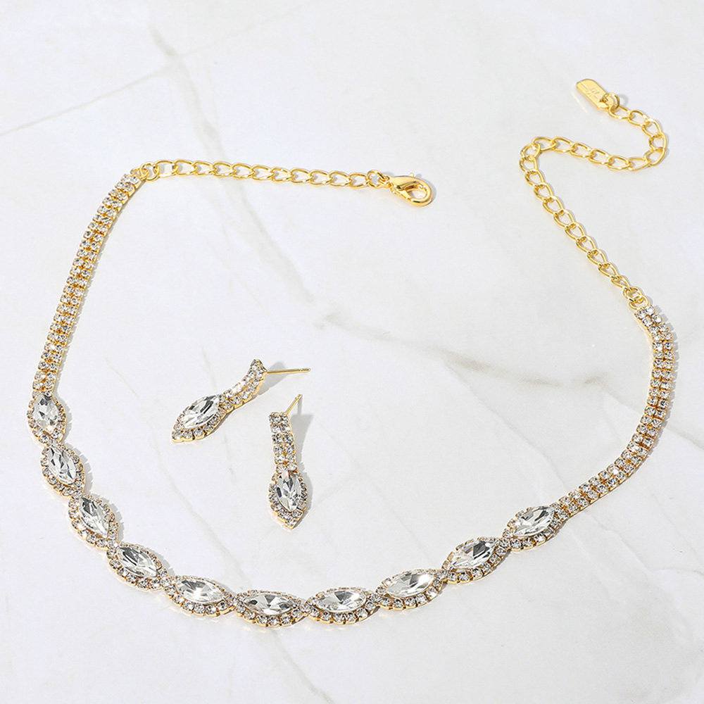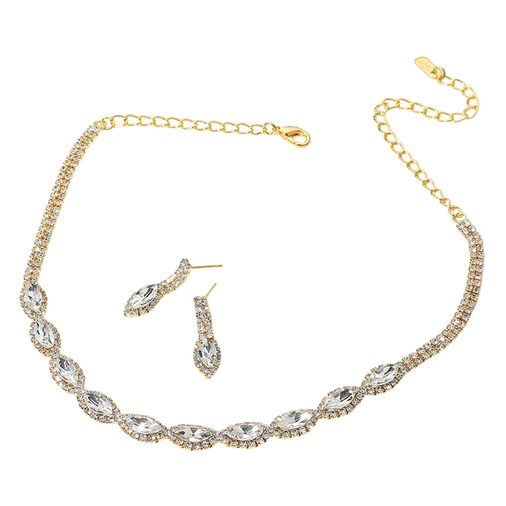 Details • Necklace Size : 13.5" + 2.75" L • Decor Size : 0.3" L • Earrings Size : 1.2" L • Add brilliance to your outfit with this crystal twist necklace and matching earrings set. Featuring a sleek linked design with sparkling details, it’s perfect for formal events, weddings, or evening outings where you want to shine with timeless sophistication and glamour.