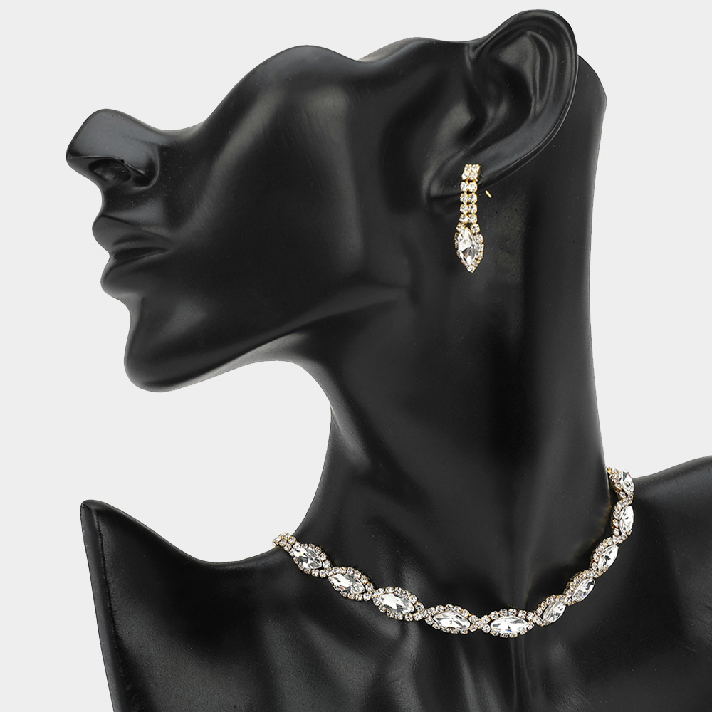 Marquise Stone Cluster Link Rhinestone Paved Evening Choker Necklace