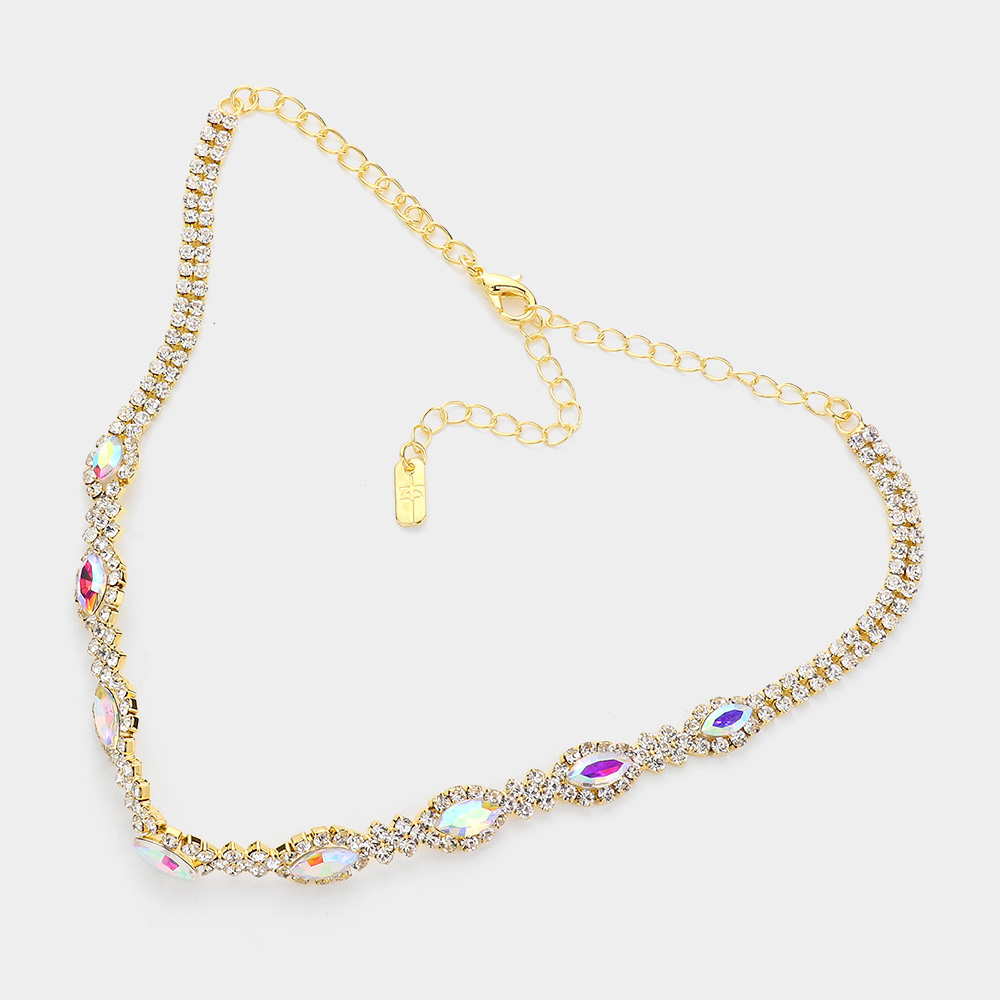 Rhinestone Trimmed Marquise Square Stone Link Dangle Evening Earrings