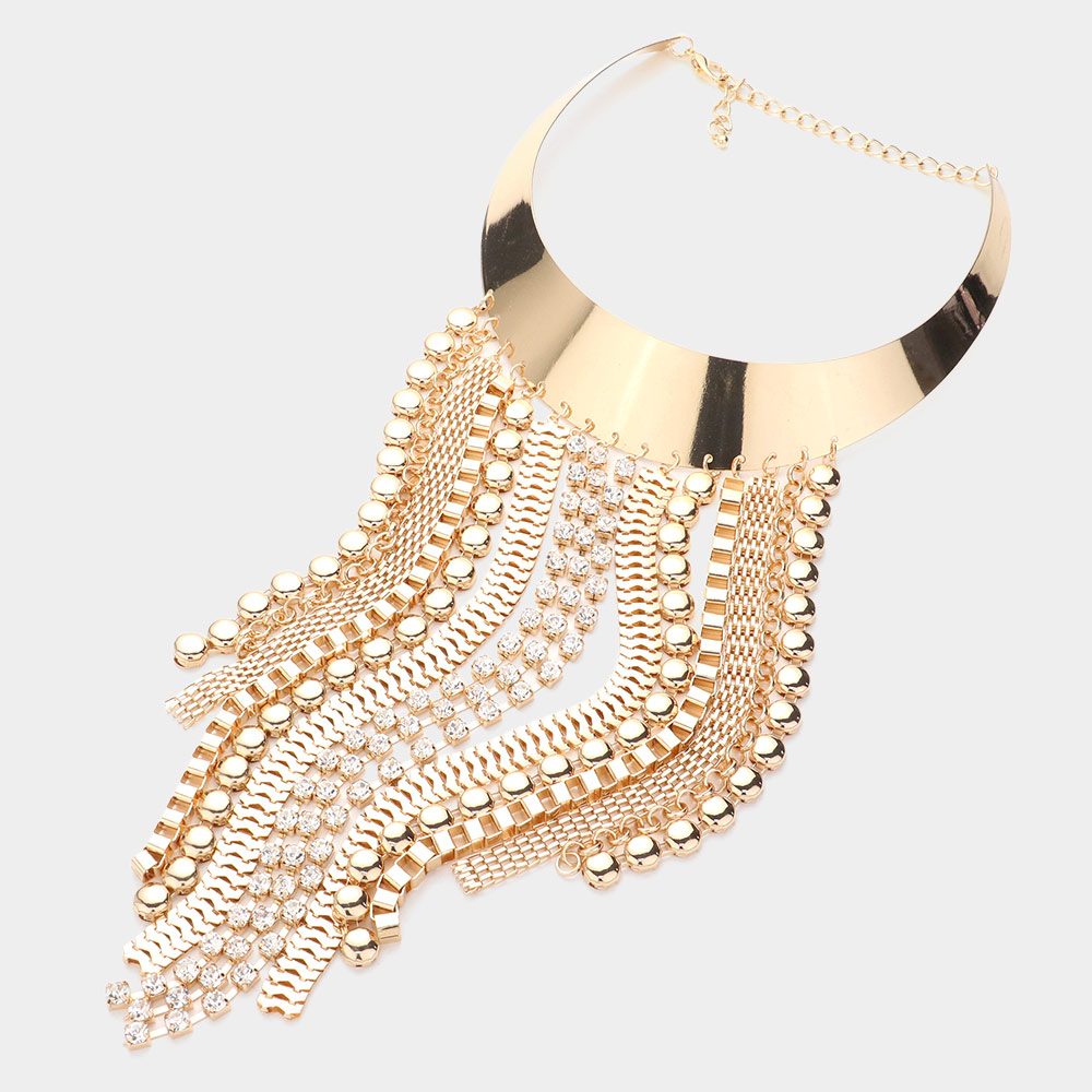 Metal Ball Chain Rhinestone Fringe Evening Choker Necklace