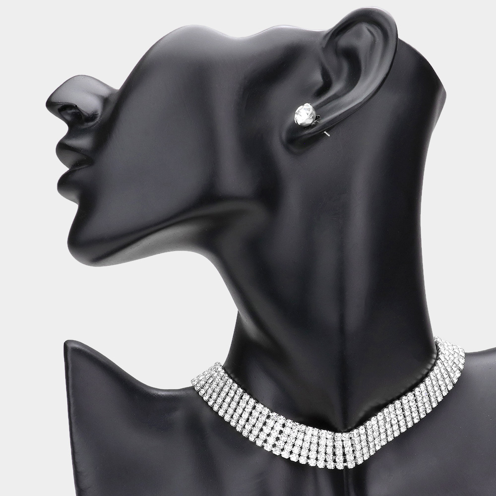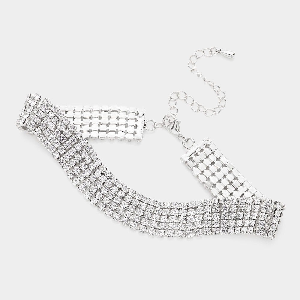 Metal Bar Pointed Rhinestone Paved Chain Anklet