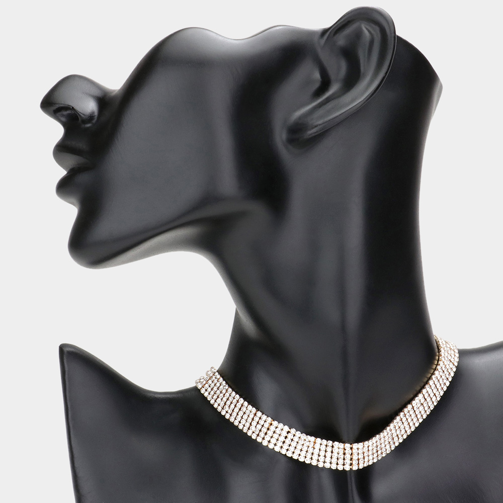 Marquise Stone Fringe Rhinestone Paved Necklace